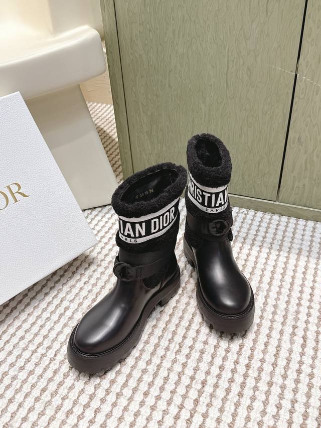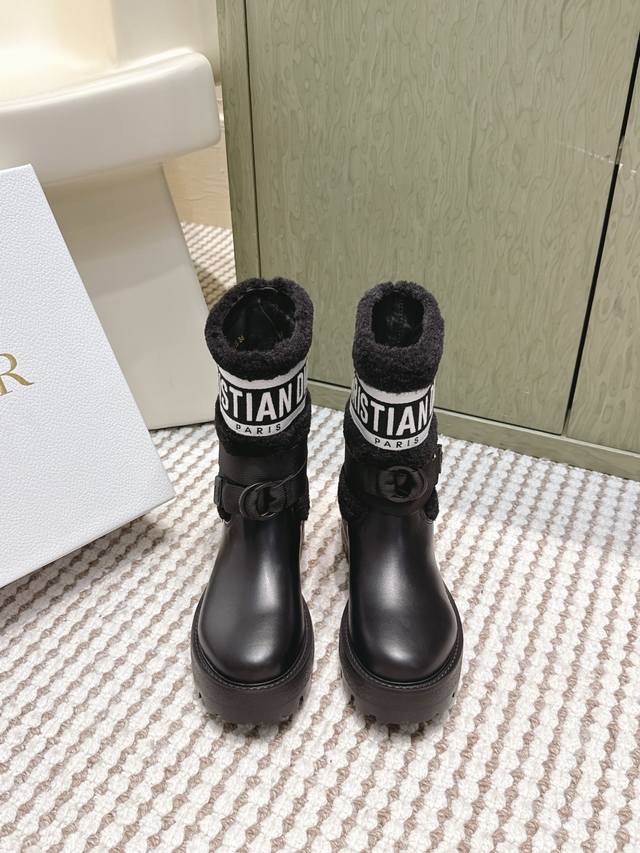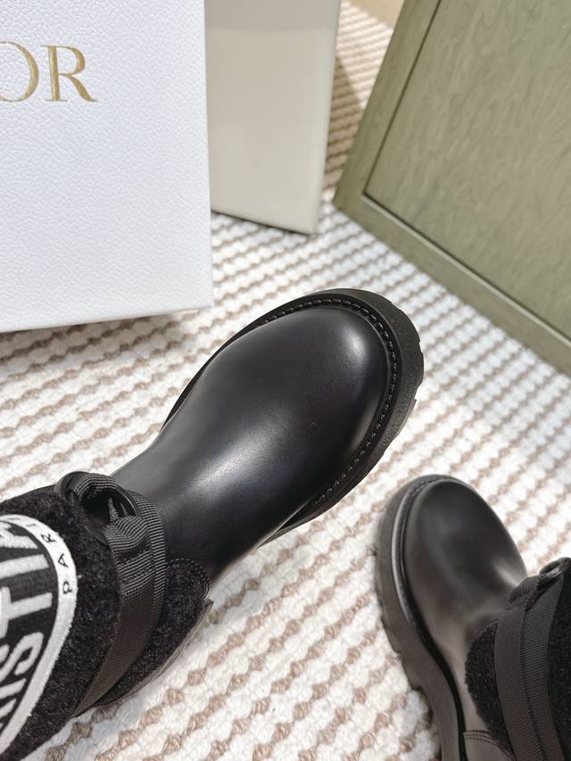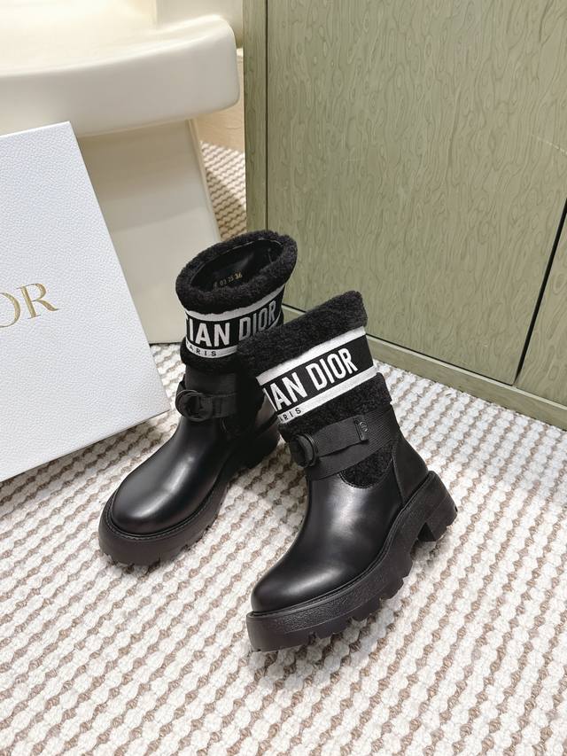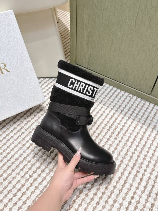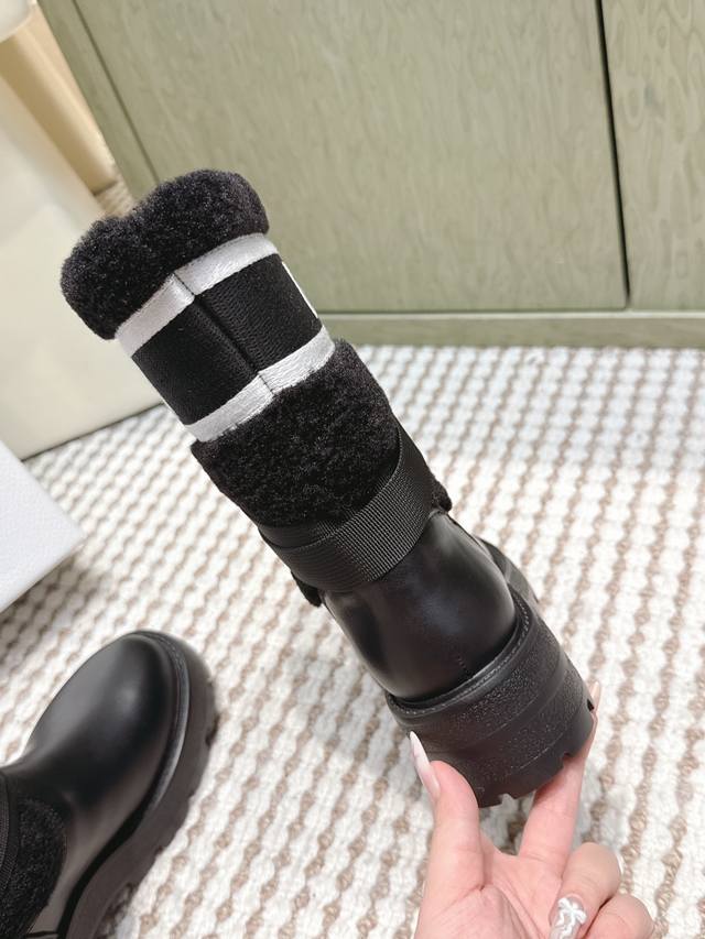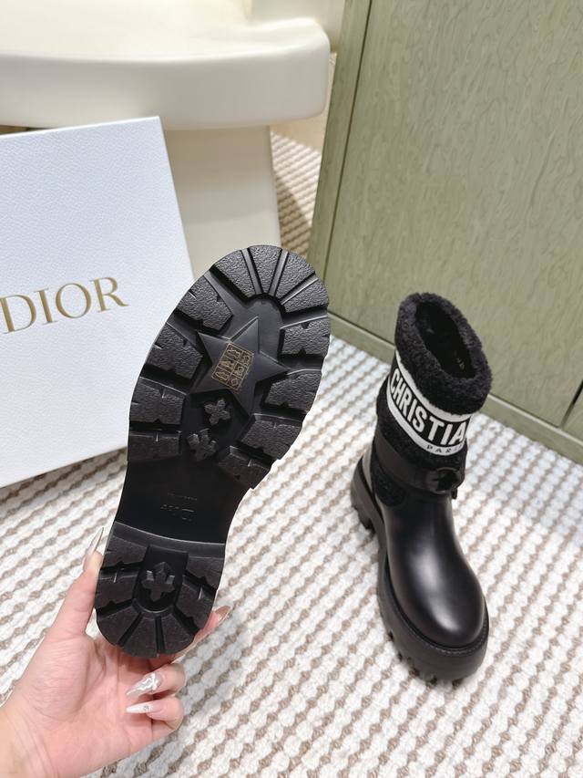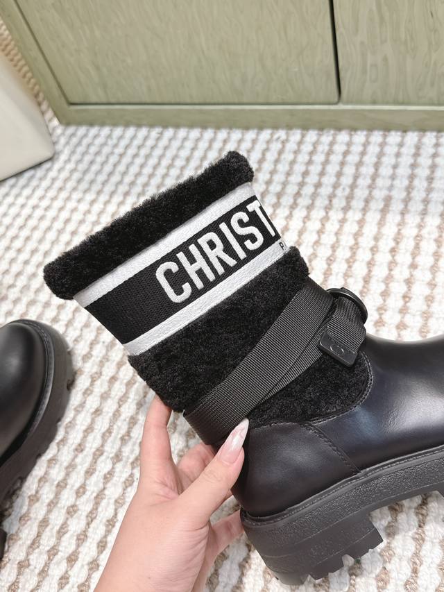 代购级 DDD Dior 迪奥2026新款封神战靴马丁袜子靴 DDD 这款 D-Major 靴子醒目吸睛,彰显个性。黑色牛皮革鞋面搭配同色调科技针织面料袜筒,饰以灵感源自 Book Tote 手袋的白色 Christian Dior 标志条形图案。可调节饰带突显脚踝线条,厚实而轻盈的凹口鞋底更显精致。 DDD 帮面材质:织物,牛皮革 DDD 鞋面饰以 Christian Dior 标志 DDD 脚踝处搭配可调节尼龙饰带 DDD 加垫牛皮革内底 DDD 凹口 Eva 鞋底饰以 Christian Dior