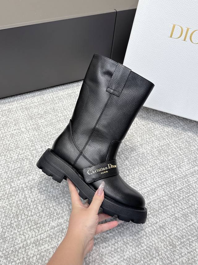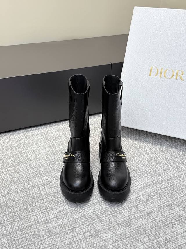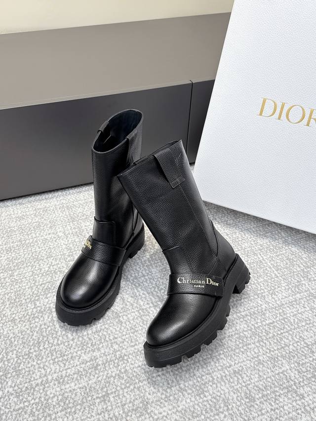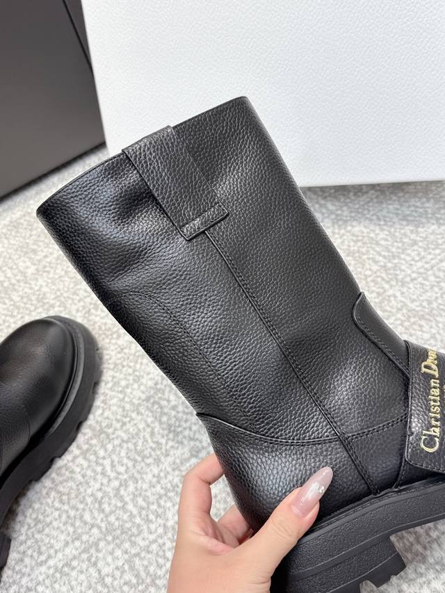 出厂价Pp: Dior 迪奥2025秋冬走秀高定系列D-West切尔西女靴 Cd字母Logo五金扣机车靴 明星同款粗跟尖头一脚骑士短靴 市面顶级版本...