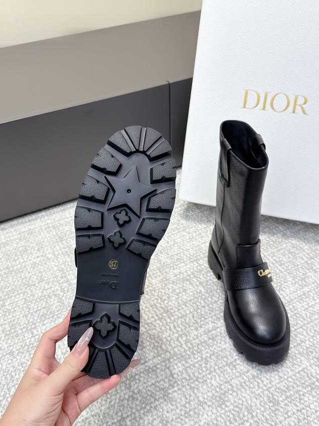 / 代购级 Dior 25 迪奧秋冬新款靴子 秋冬成衣系列发布秀上全新亮相,灵感源自1960年代的优雅与精致。 采用黑色漆皮牛皮革和皮革效果弹力面料精心制作,鞋面饰