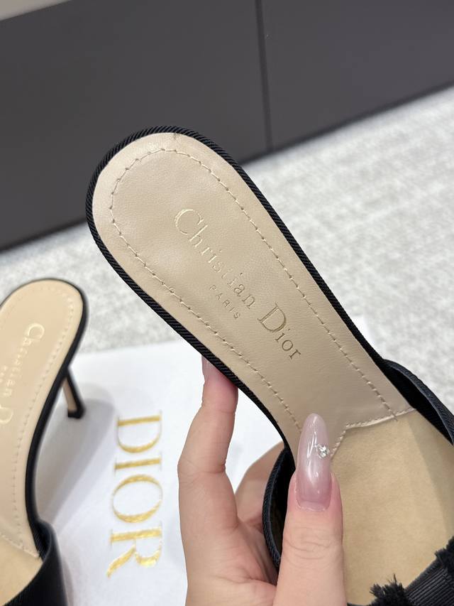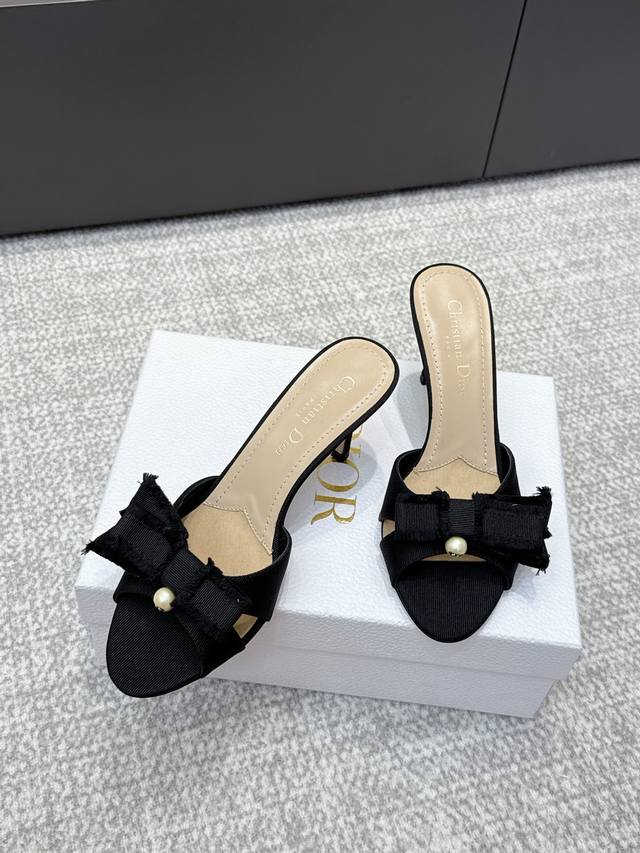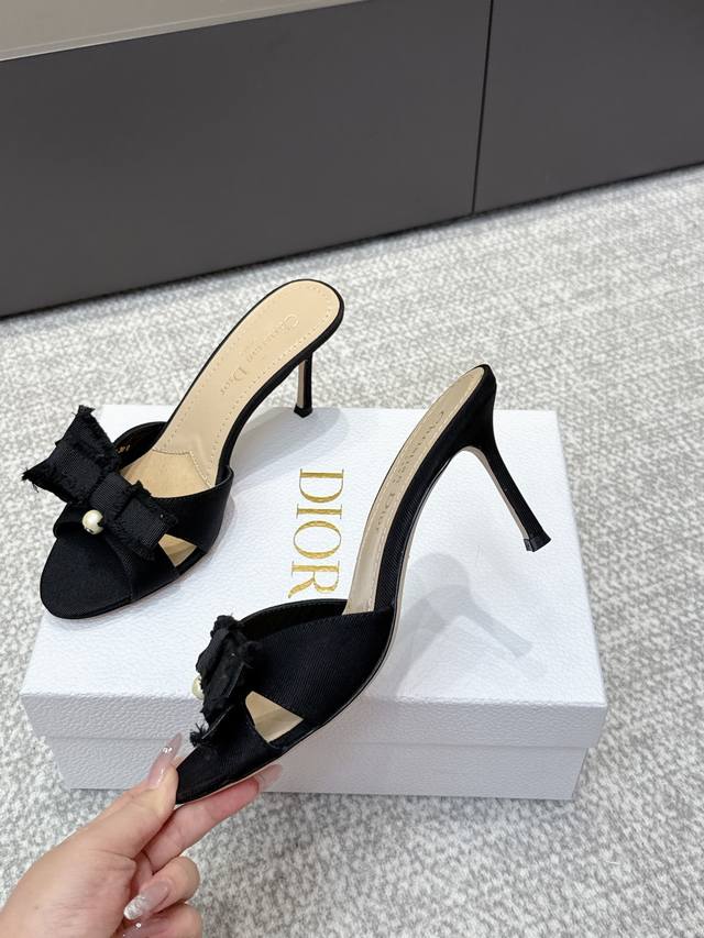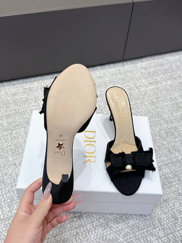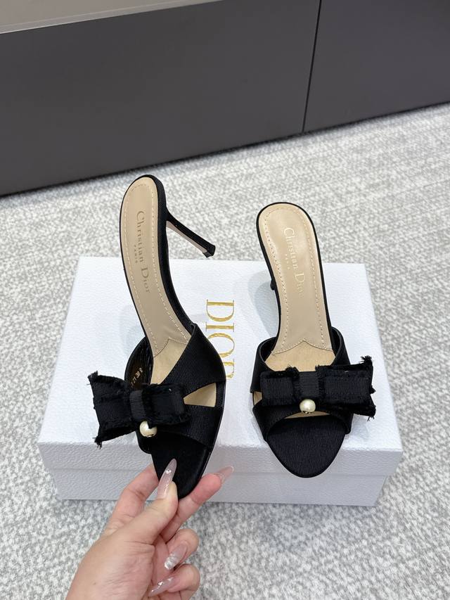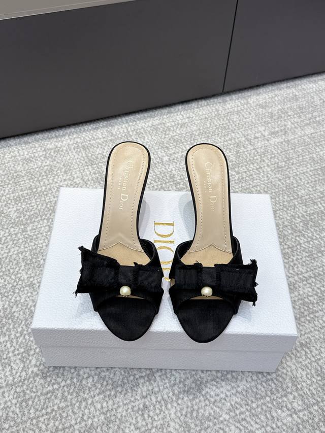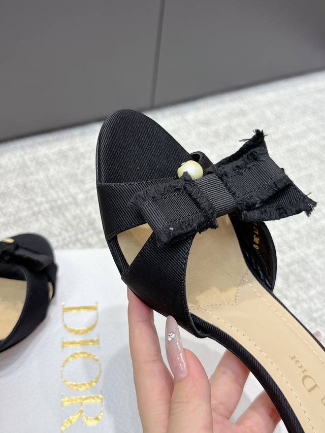 代购级 Dior 25Ss Cd家蝴蝶结珍珠 猫跟拖鞋 被韩素汐种草的新款Dior超级好看 蝴蝶结左右不对称 好看的不得了 温柔的样子 Cd倾情呈献 Adior