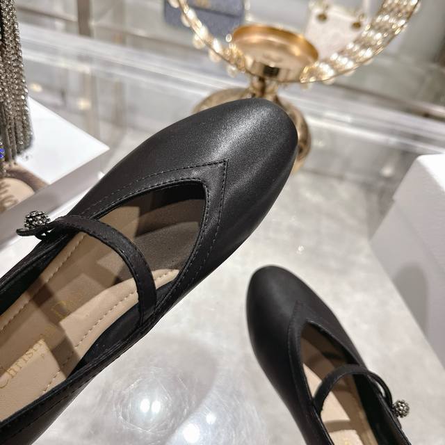/ 出厂价P Dior 迪奥 2025秋冬最新时装秀高定系列新款D-New Ballet 粗跟圆头玛丽珍芭蕾舞娃娃女鞋 Cd字母Logo五金扣低跟中古女单鞋 材质: