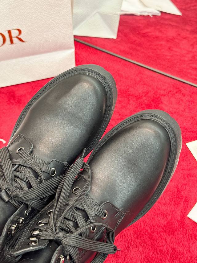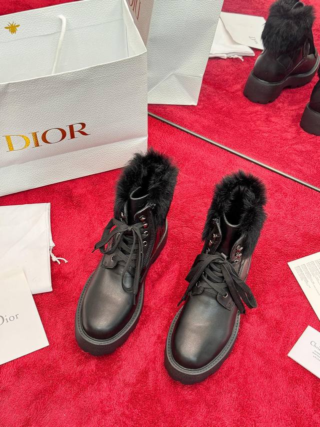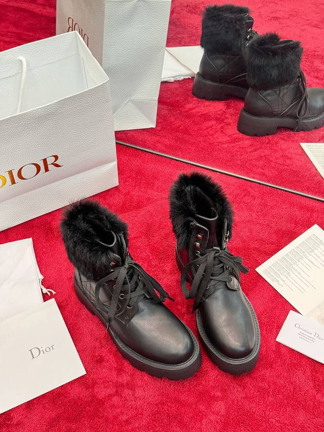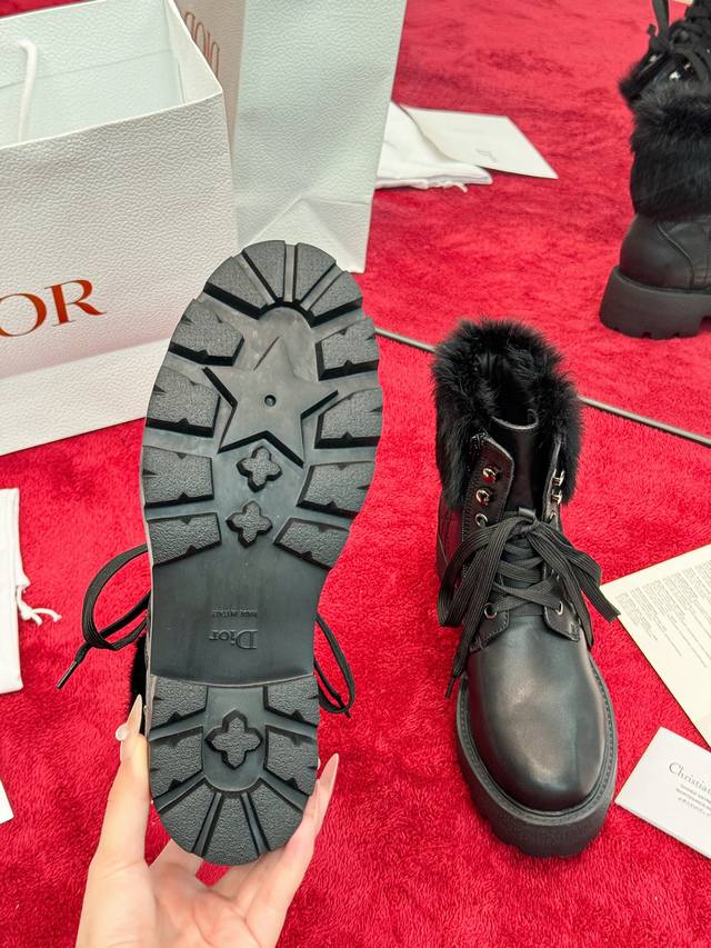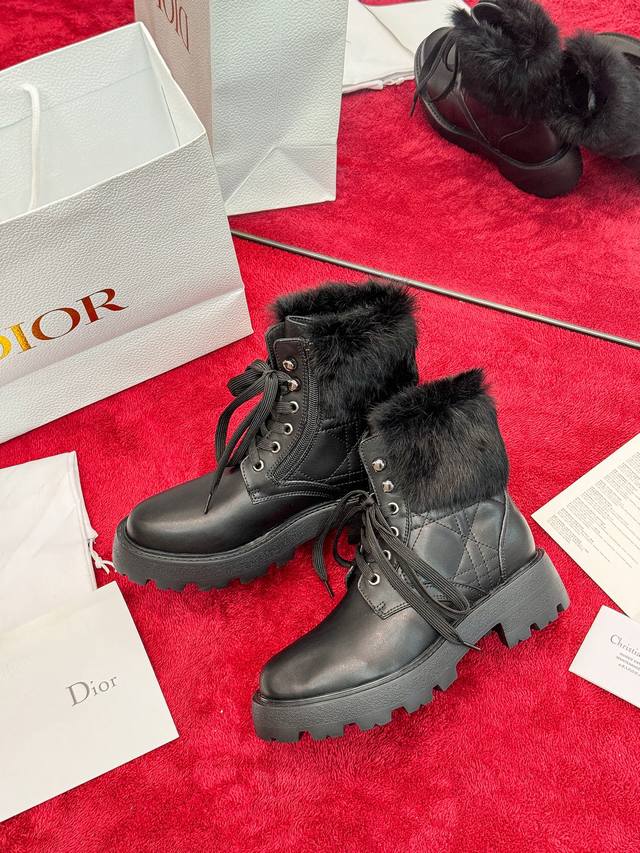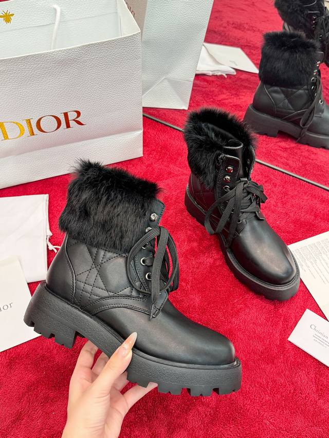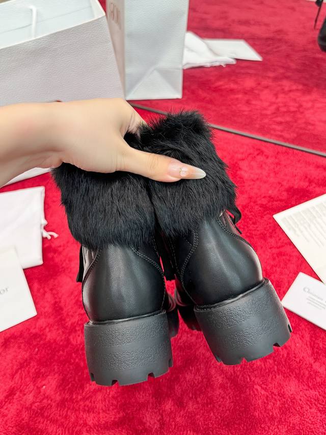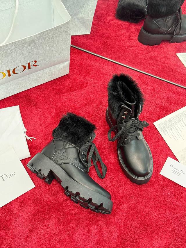 出厂价Pp:皮面 Dior 迪奥2025秋冬新款D-Majo羊毛藤格纹电绣女短靴 明星同款Cd字母Logo系带机车靴 低跟厚底圆头系带骑士靴 材质:鞋面进口小牛皮+水染羊皮内里垫脚+原版开模大底 底厚:3.5Cm Size:35-41标准码 40.41定制网盘不退