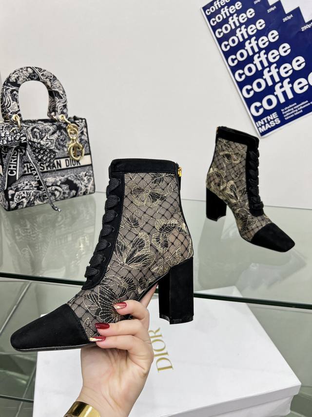 / 出厂价Pp:跟靴 DDD J'adior 刺绣提花 网靴迪奥 Dior 春夏最新色 Jardin D’Hiver 提花刺绣字母Logo高跟金丝蝴蝶,市场顶级高端