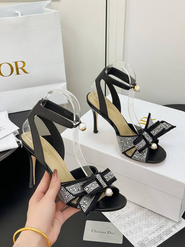 / 出厂价Pp: 玛丽亚 嘉茜娅 蔻丽 Maria Grazia Chiuri 推出精致高雅的 Dior Gem 带跟凉鞋。采用银色调棉质面料精心制作,饰以金属光泽