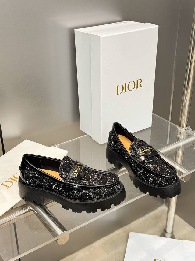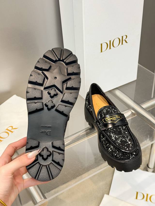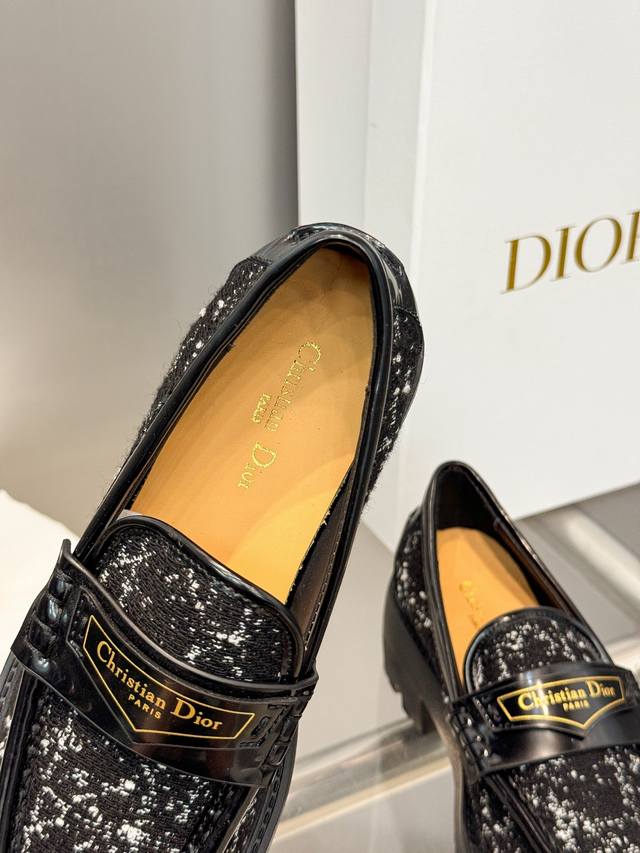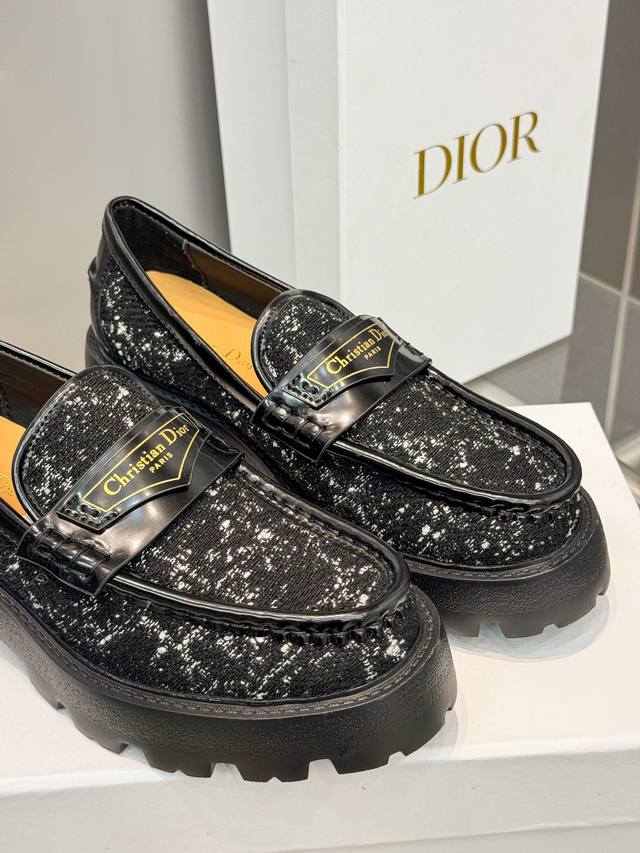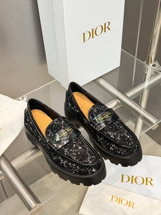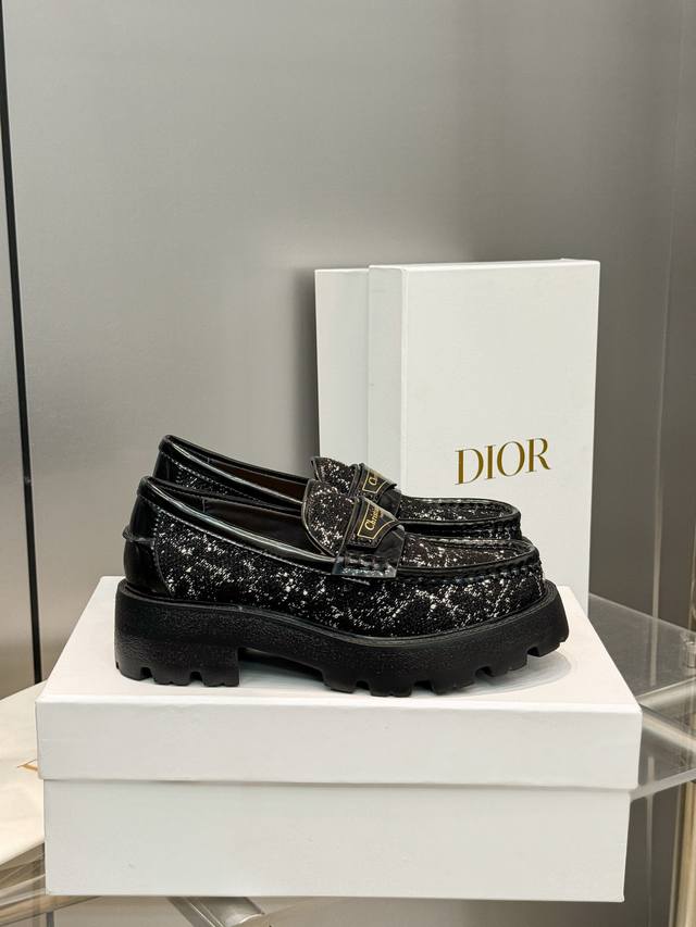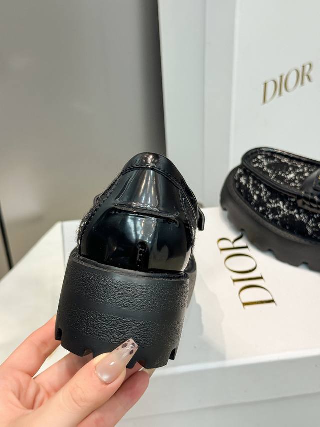 出厂价Pp: 迪奥 Dior 秋冬新款 D-Boy 字母Logo拼色厚底女鞋 明星同款一脚蹬皮带扣圆头复古低跟乐福单鞋 材质:鞋面进口开边珠牛皮拼接环保藤格纹粗
