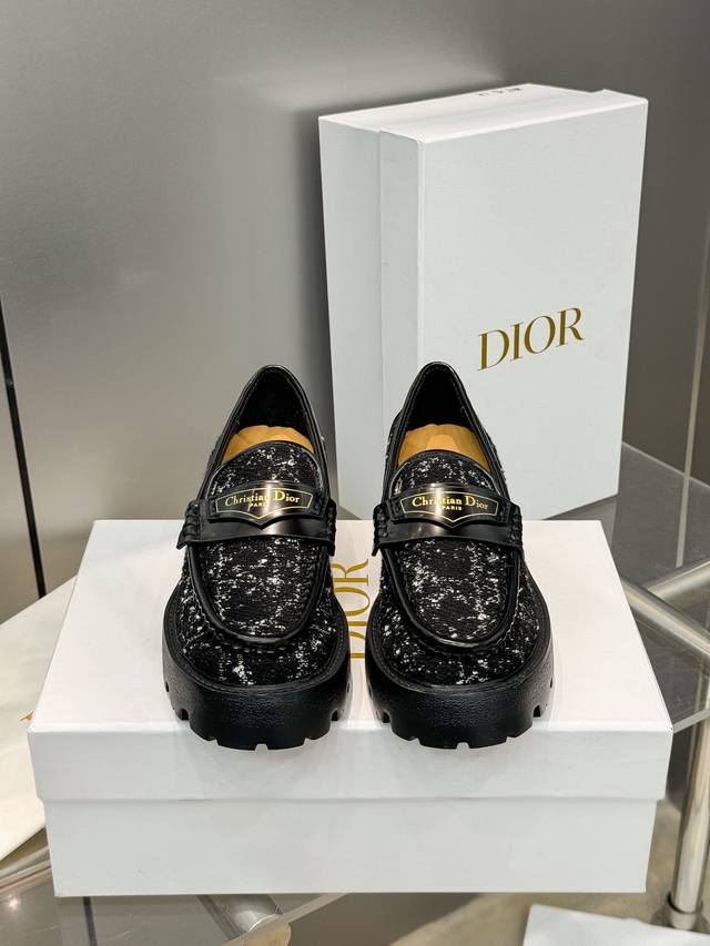 出厂价Pp: 迪奥 Dior 秋冬新款 D-Boy 字母Logo拼色厚底女鞋 明星同款一脚蹬皮带扣圆头复古低跟乐福单鞋 材质:鞋面进口开边珠牛皮拼接环保藤格纹粗花呢+水染羊皮内里+原版开模Ip大底底厚:3.5Cmsize: 35-42 41.42 定做不退不换