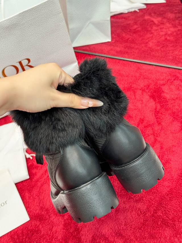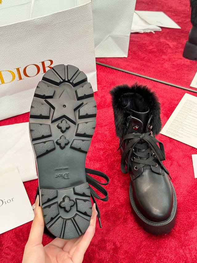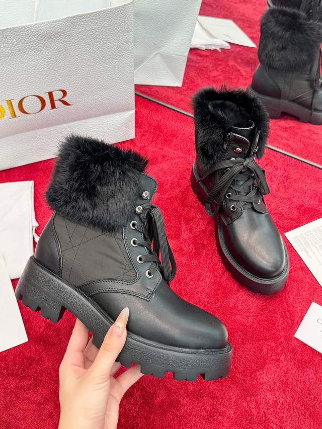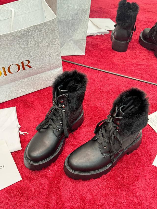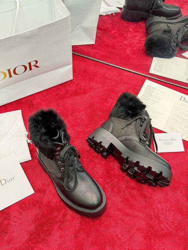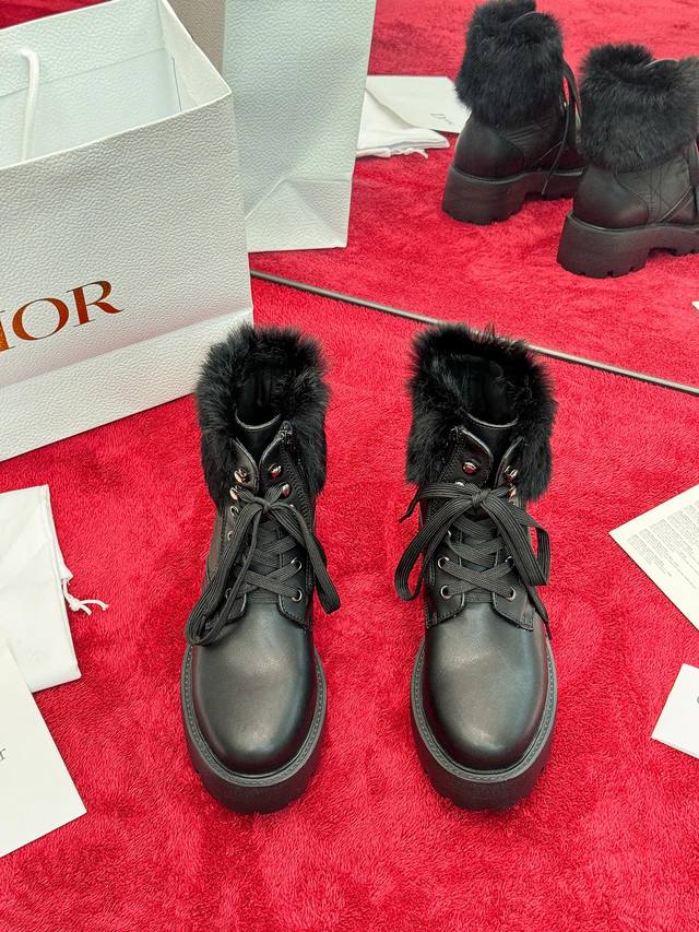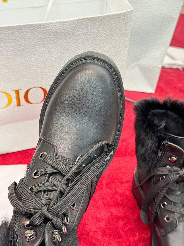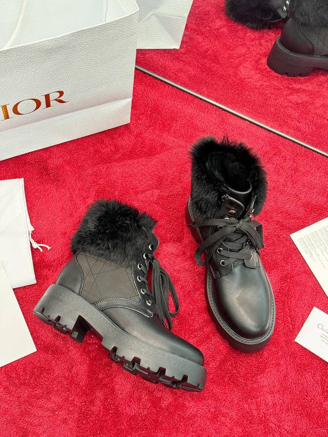 出厂价Pp: Dior 迪奥2025秋冬新款D-Majo羊毛藤格纹电绣女短靴 明星同款Cd字母Logo系带机车靴 低跟厚底圆头系带骑士靴 材质:鞋面进口小牛皮+水染羊皮内里垫脚+原版开模大底 底厚:3.5Cm Size:35-41标准码 40.41定制网盘不退