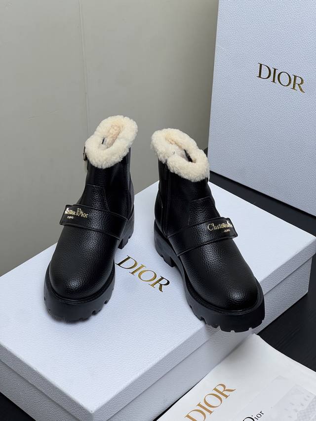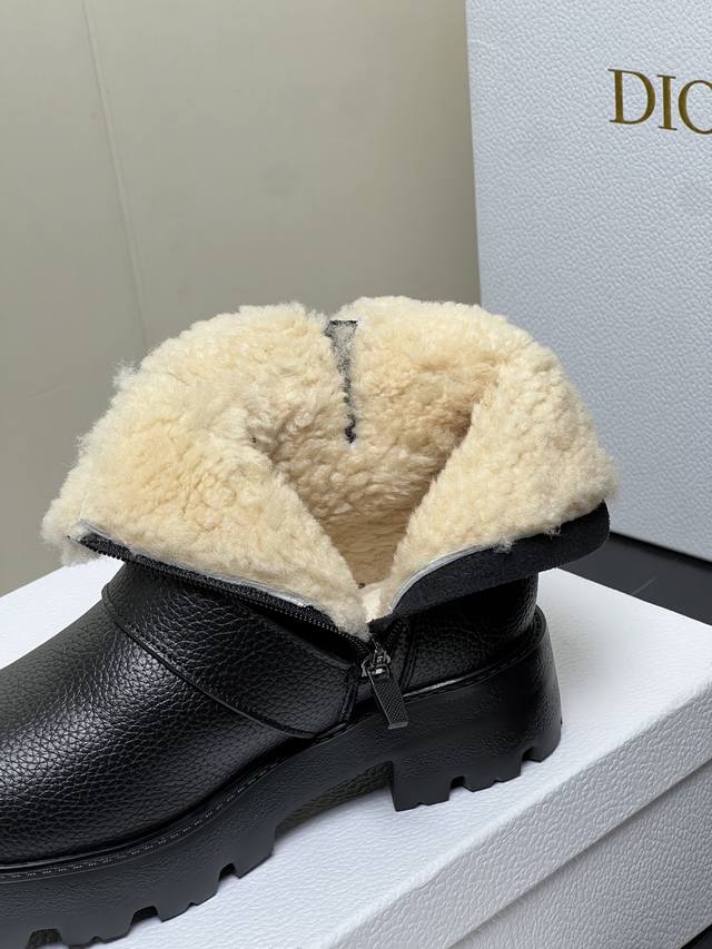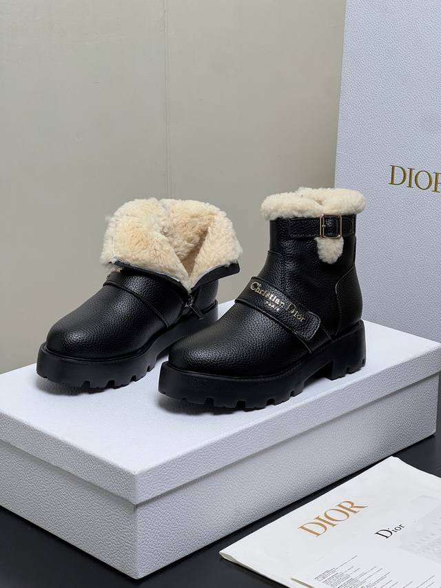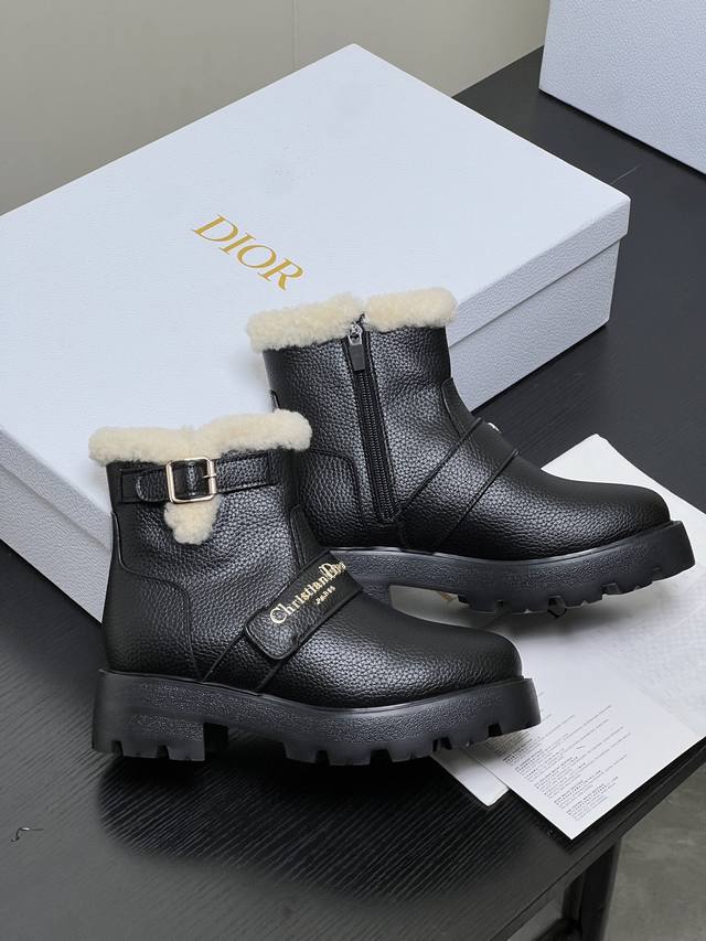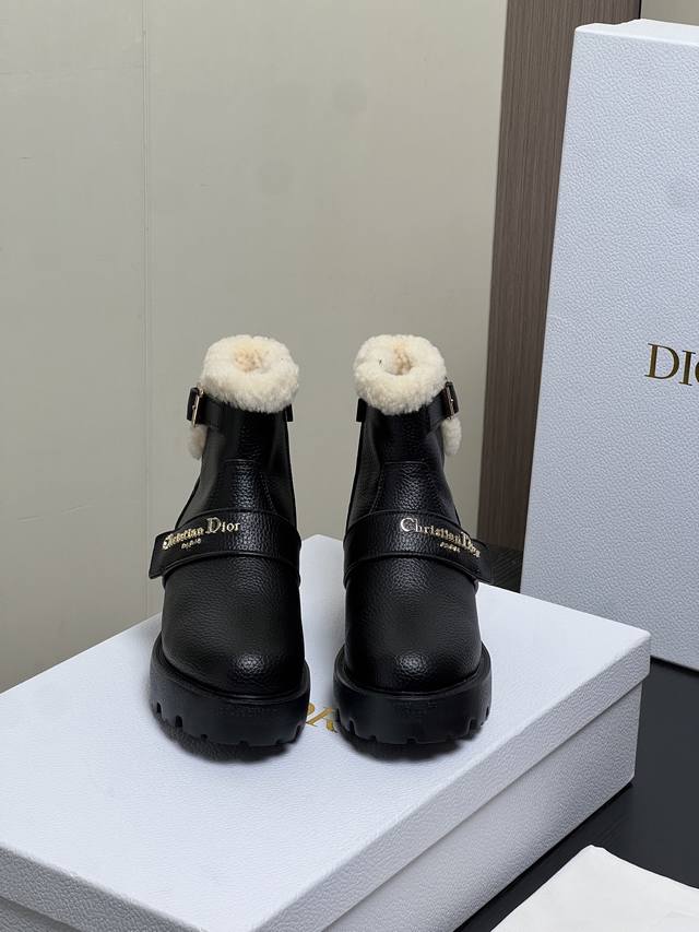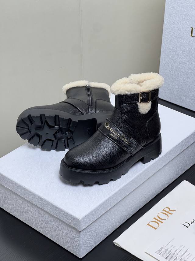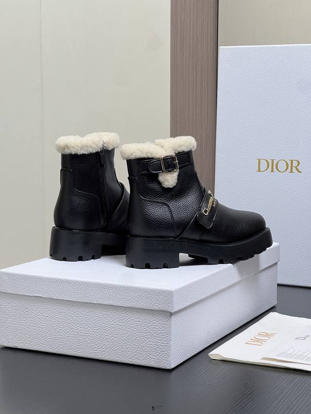 出厂价pp: DDD Dior 迪奥2025秋冬新款D-Major系列朋克风防寒保暖毛毛女靴 明星同款Cd字母Logo五金皮带扣侧拉链机车靴 厚底圆头一脚蹬骑士短靴 DDD 材质:鞋面进口全粒面小牛皮+100%羊羔毛内里+原版开模Ip大底 DDD 底厚:3.5Cm DDD Size:35-41标准码 40.41定制不退换 DDD