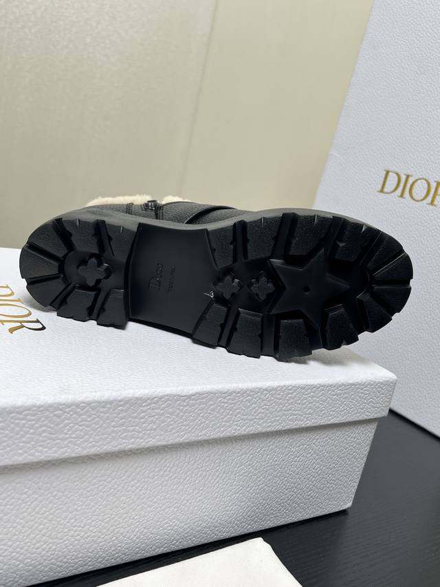 / 出厂价pp: Dior 迪奥2025秋冬新款D-Major系列朋克风防寒保暖毛毛女靴 明星同款Cd字母Logo五金皮带扣侧拉链机车靴 厚底圆头一脚蹬骑士短靴 材