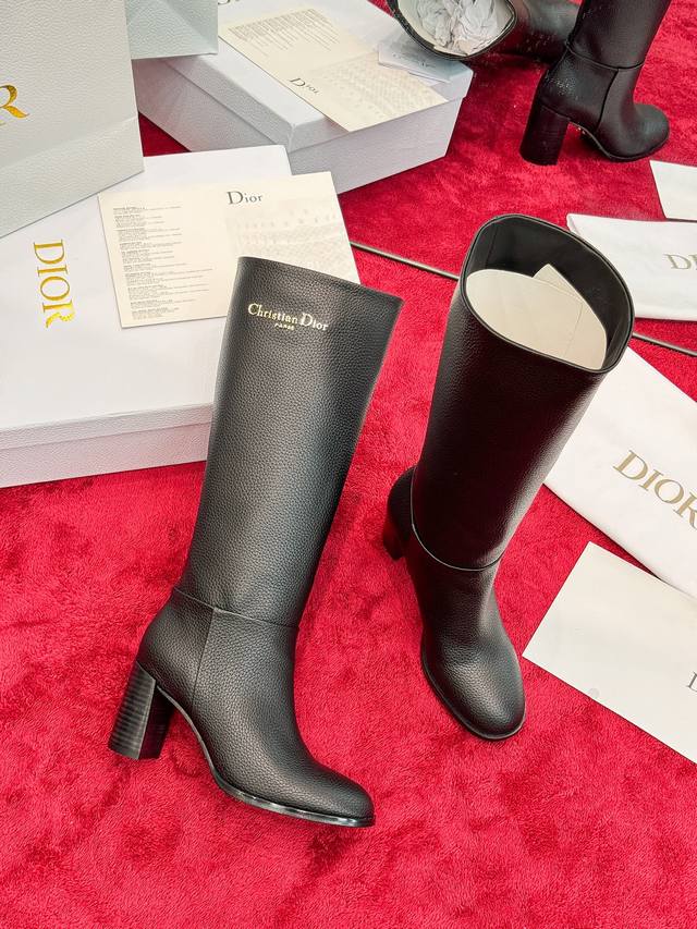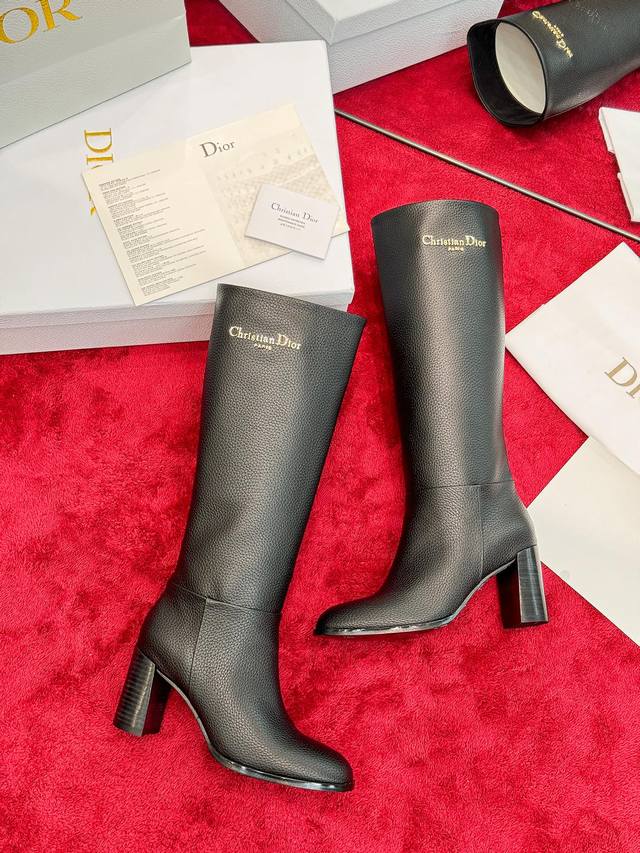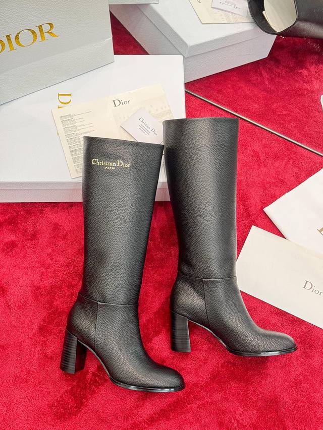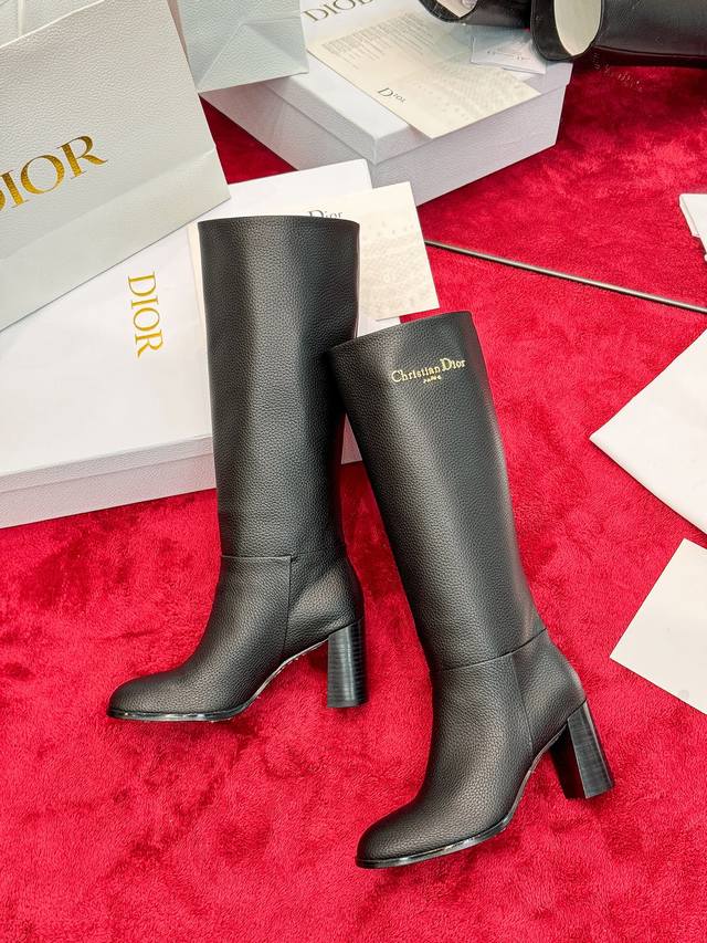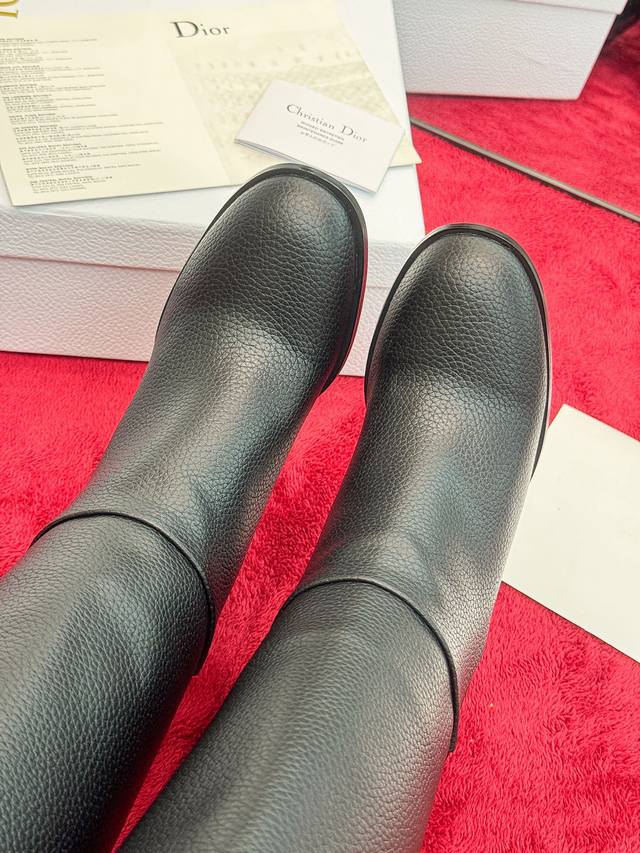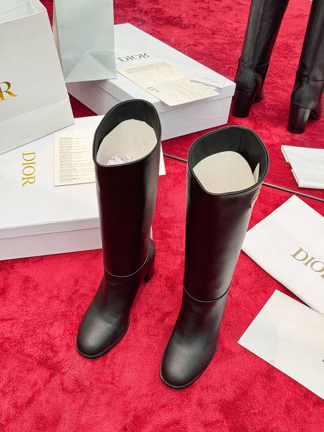 出厂价Pp: Dior 迪奥2025秋冬新款D-Town系列朋克风粗跟女靴 明星同款Cd字母Logo五金扣机车及膝长靴 高跟圆头一脚蹬骑士高筒靴 材质:鞋面进口