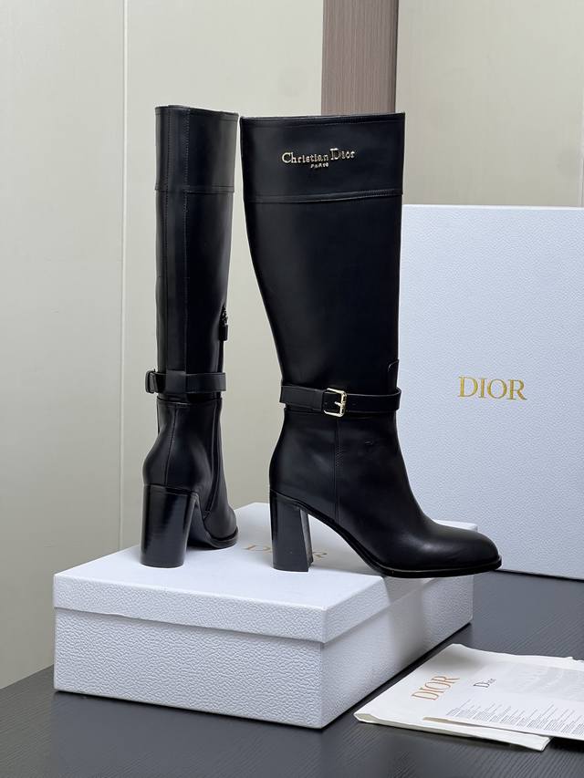 出厂价pp: DDD Dior 迪奥2025秋冬新款D-Town系列朋克风粗跟女靴 明星同款Cd字母Logo五金皮带扣机车及膝长靴 高跟圆头一脚蹬骑士高筒靴 DDD 材质:鞋面进口小牛皮 进口羊皮+水染牛皮内里垫脚+意大利真皮大底+原版开模五金扣 DDD 跟高:8Cm DDD Size:35-41标准码 40.41定制不退换 DDD