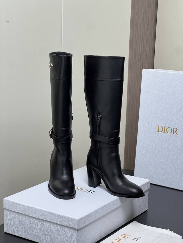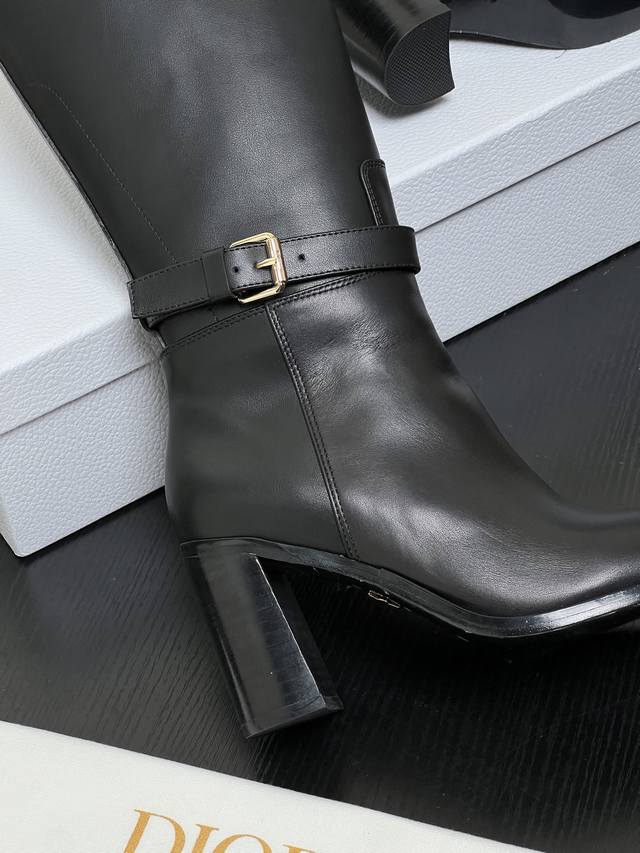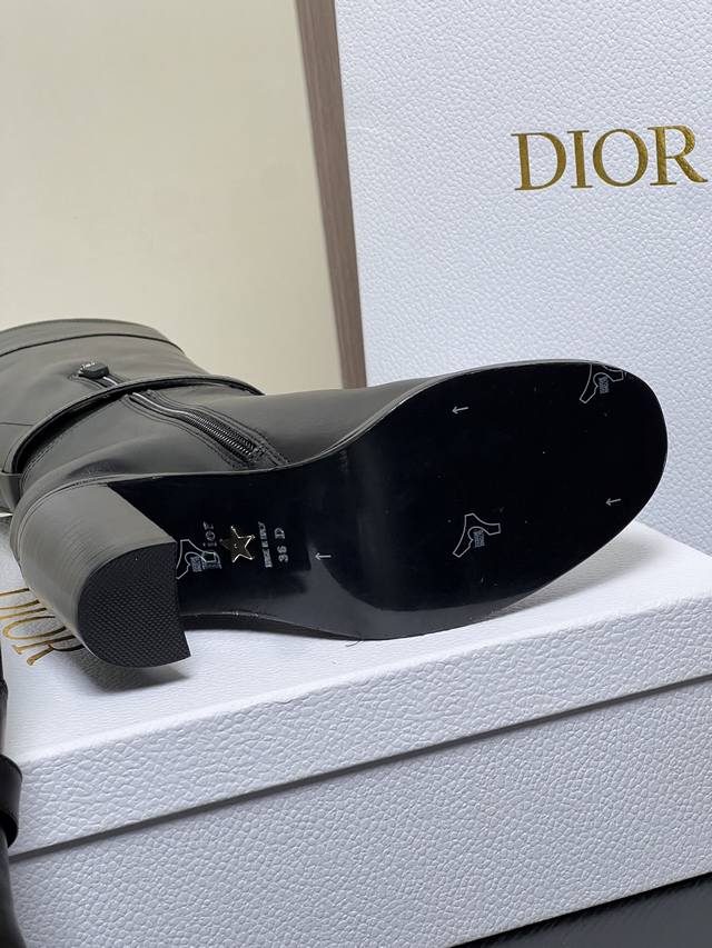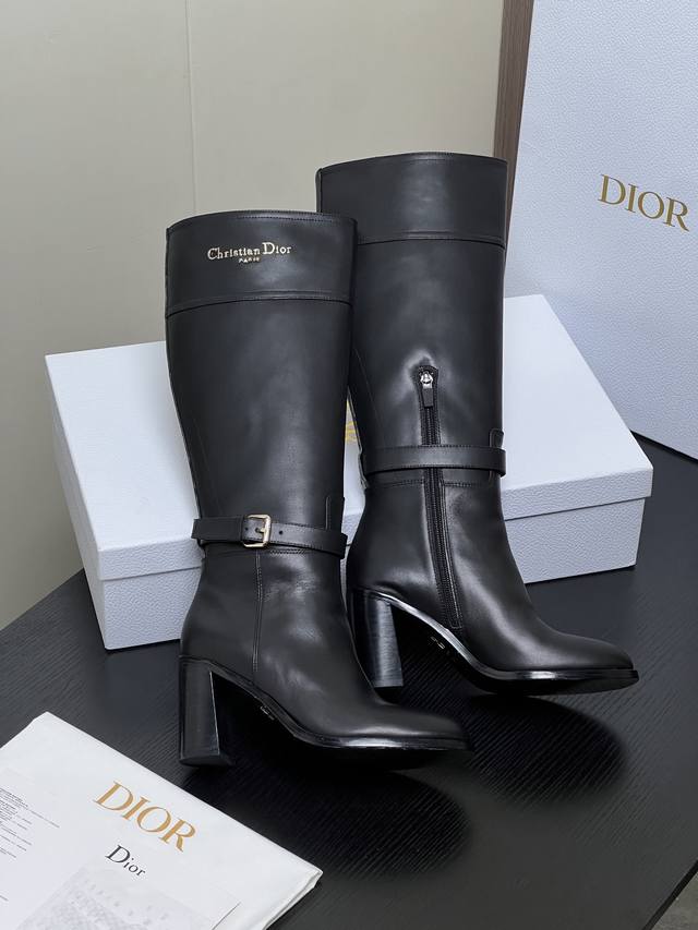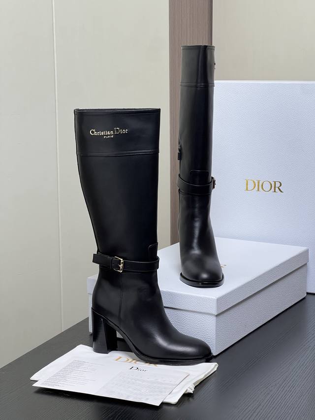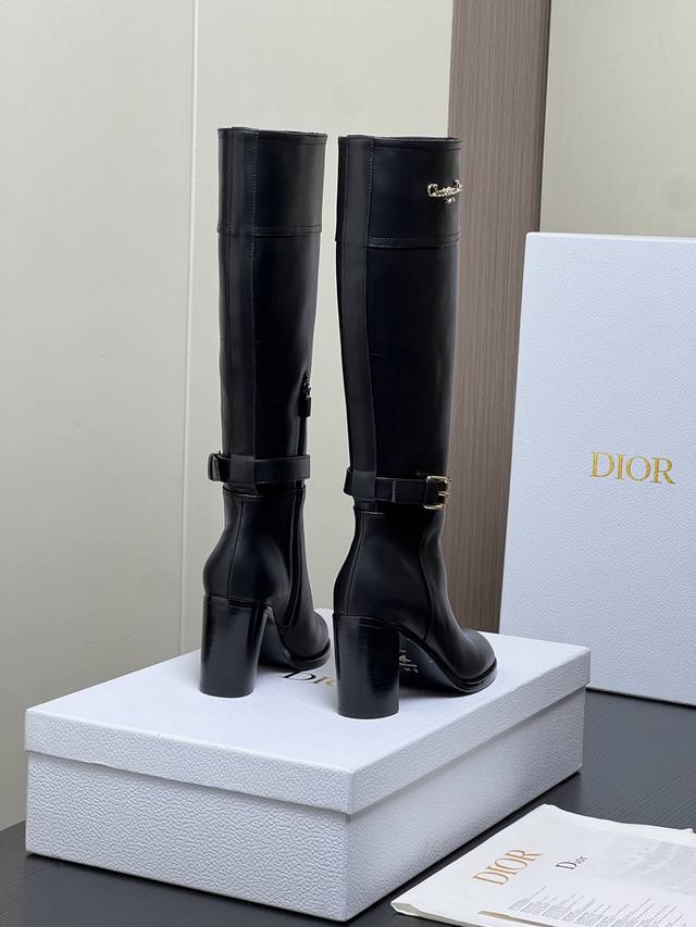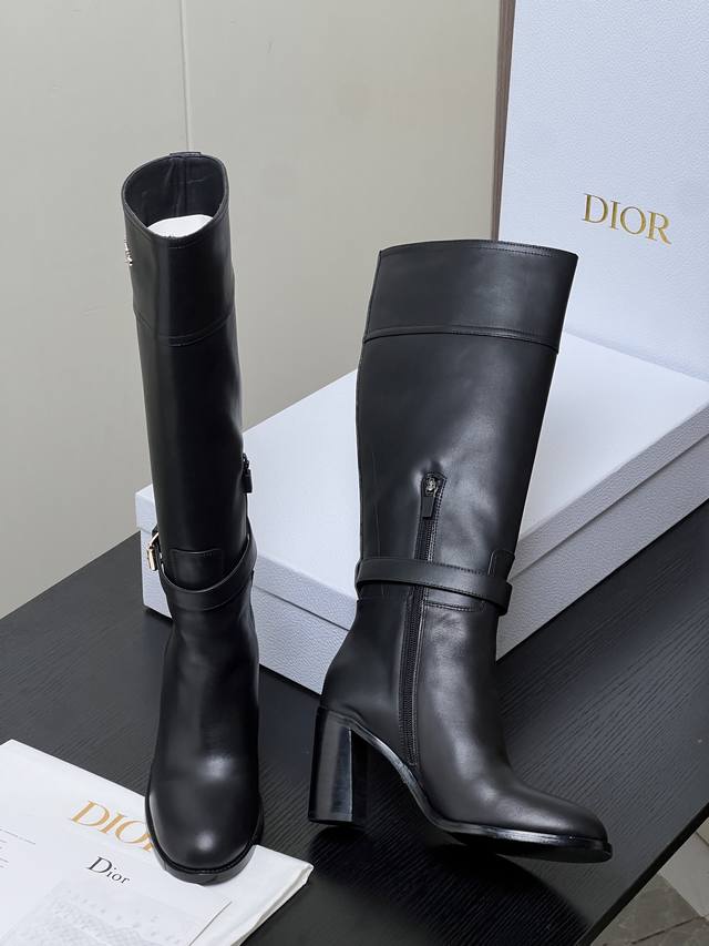 / 出厂价pp: Dior 迪奥2025秋冬新款D-Town系列朋克风粗跟女靴 明星同款Cd字母Logo五金皮带扣机车及膝长靴 高跟圆头一脚蹬骑士高筒靴 材质:鞋面