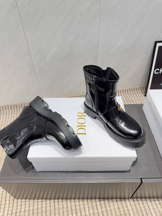 出厂:皮里 独家顶级版本 Dio*R迪奥2025Vs早秋经典爆款靴子系列 复古圆头短靴 原版复刻,细节完全区别,全新复古科技电绣风向标,时间抢眼,简约百搭不平凡