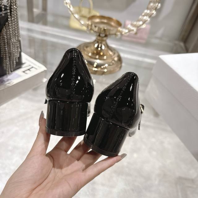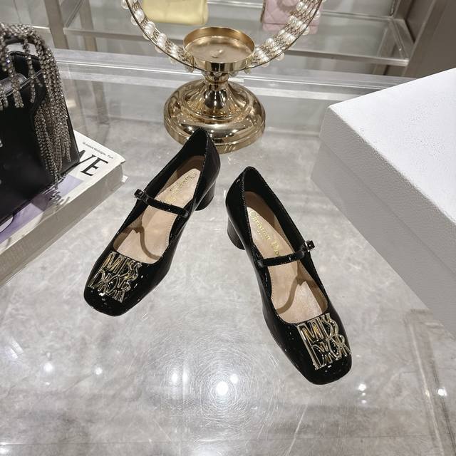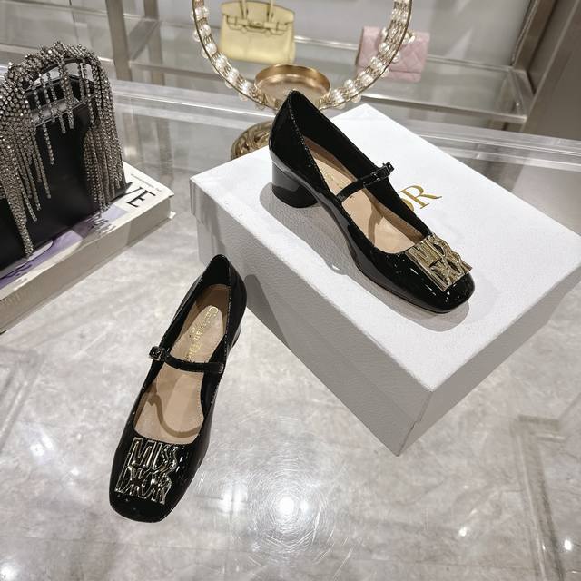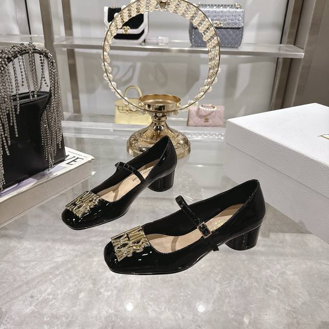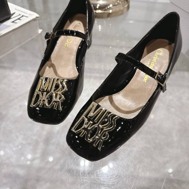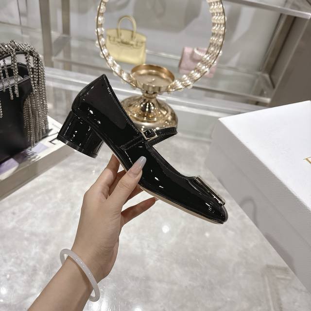 出厂 迪奥秋冬新款方头单鞋 原版开模五金扣件,好精致啊,小方头时髦复古!整一个富家千金的味道!脚背一字带设计款式更有气质 牛漆皮鞋面 羊皮内里 真皮大底. 跟高3Cm Size:35-39 40定做不退换