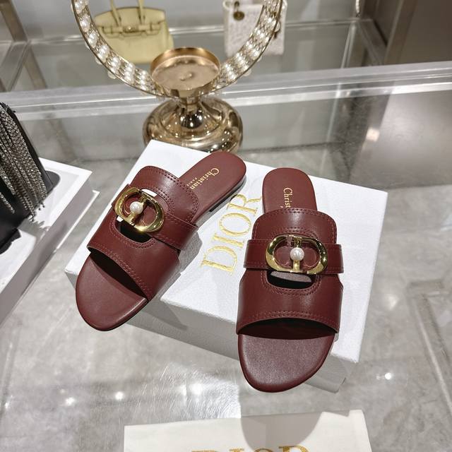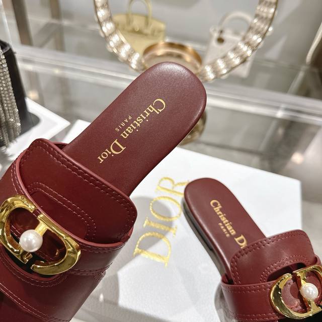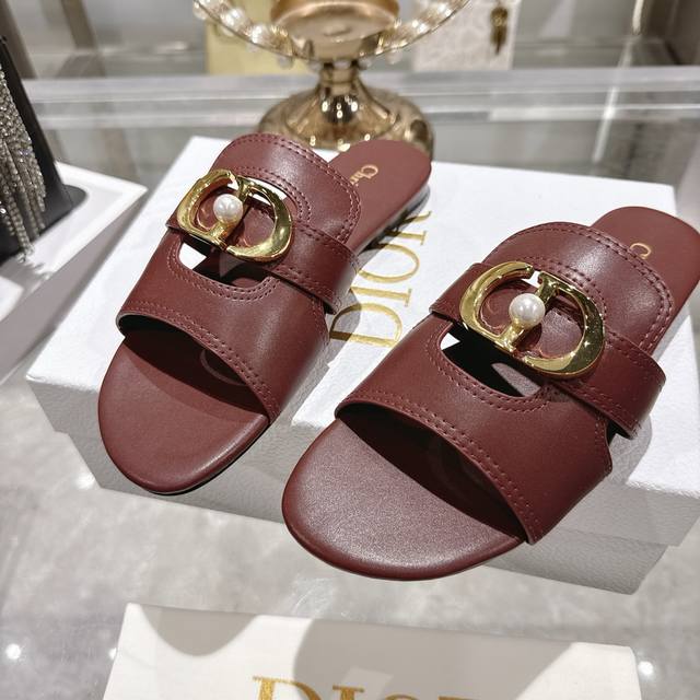 出厂 迪奥 Dior 2026春夏新款 D-Club果冻色镂空交叉带粗跟珍珠女鞋 Cd字母Logo五金扣平底圆头露趾凉拖鞋意大利真皮大底 Ddd Size:34-41 34.40.41.定做不退不换 DDD