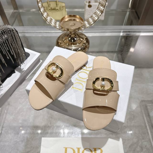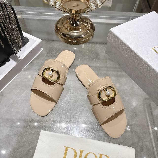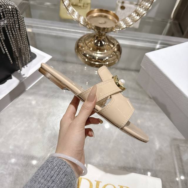 330Dior迪奥 25Ss春夏新款 Ivieta Dway 平底一字拖鞋 凉鞋 原版开发市面顶级版本 Cd字母Logo立体刺绣厚底圆头露趾拖鞋 脚感柔软细腻