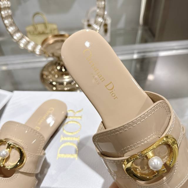 出厂 迪奥 Dior 2026春夏新款 D-Club果冻色镂空交叉带粗跟珍珠女鞋 Cd字母Logo五金扣平底圆头露趾凉拖鞋意大利真皮大底 Ddd Size:34-41 34.40.41.定做不退不换 DDD