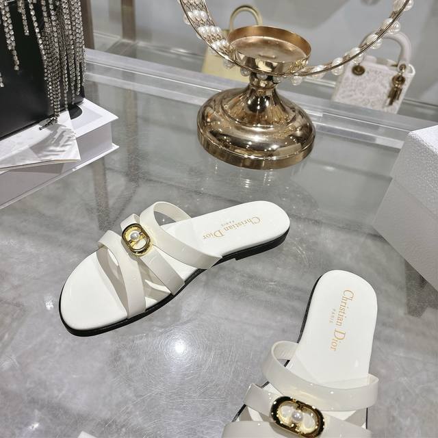 出厂 迪奥 Dior 2026春夏新款 D-Club果冻色镂空交叉带跟珍珠女鞋 Cd字母Logo五金扣平底圆头露趾凉拖鞋 有两种不同选择,平时舒适 休闲 高跟