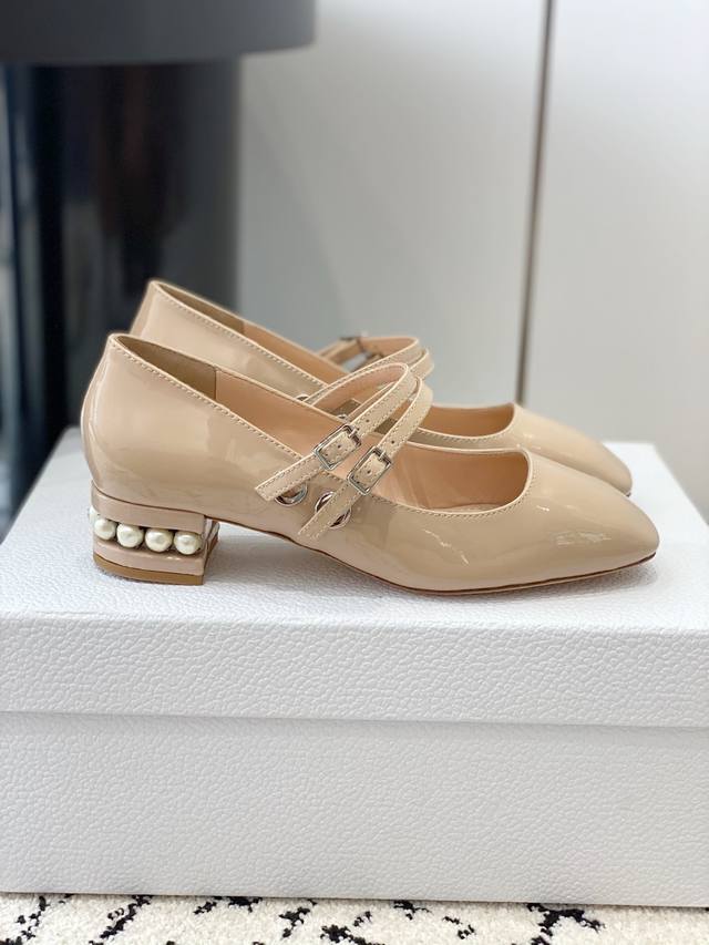 好精致啊,小方头时髦复古!整一个富家千金的味道!方跟设计加珍珠点缀好高级,脚背双带款式更有气质