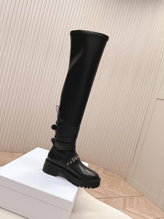 / 出 超长过膝款 最高版本 Dior迪奥25秋冬封神战靴马丁靴 弹力过膝超酷飒有范儿 匠心搭配多层条皮带扣 彰显潮流前卫风格 帅气有型 焕发运动时尚型格 面料:原