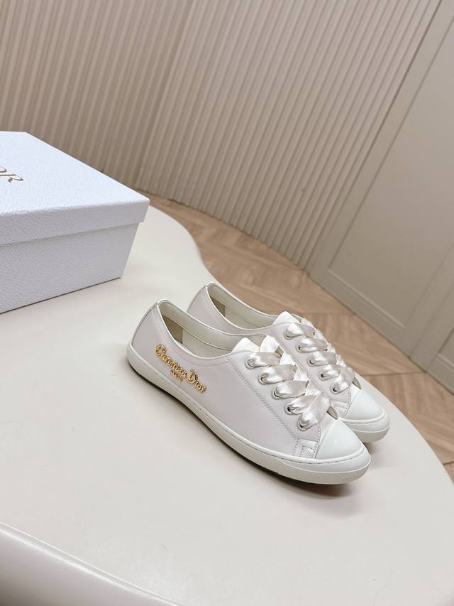 出 迪奥 Dior Lucky缎面休闲运动鞋Dior 设计师真的太懂女生夏天的需求了 这次的新品Lucky薄底鞋就像她的名字一样可爱薄底+浅口设计让整双鞋非常轻盈好穿,缎面面料 搭配同色调缎面宽鞋带,阳光下美到失语~ 软乎乎的鞋身像踩在云朵上配袜子裙裤都一绝,走起来带风又慵懒,随手一拍就是那种“毫不费力”的优雅感 小巧显贵 颜色有Baby白,樱花粉,雾霾蓝,神秘黑几个颜色清新百搭全对原版材质 35-40码