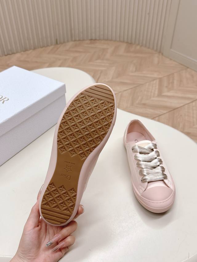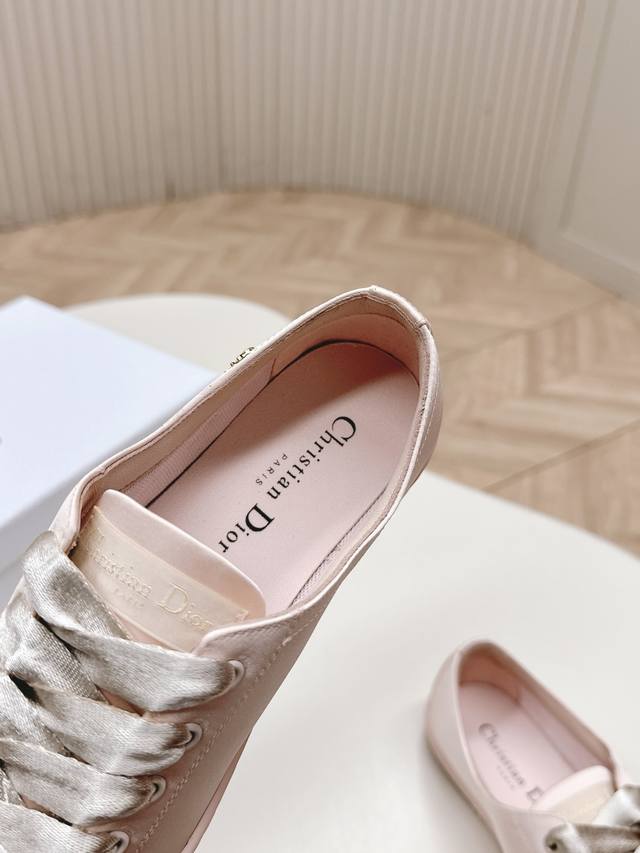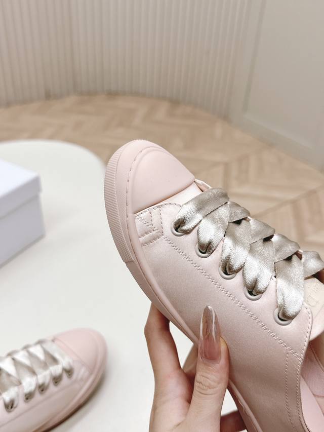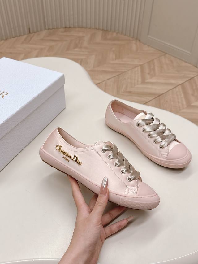 出 迪奥 Dior Lucky缎面休闲运动鞋Dior 设计师真的太懂女生夏天的需求了 这次的新品Lucky薄底鞋就像她的名字一样可爱薄底+浅口设计让整双鞋非常轻盈好穿,缎面面料 搭配同色调缎面宽鞋带,阳光下美到失语~ DDD 软乎乎的鞋身像踩在云朵上配袜子裙裤都一绝,走起来带风又慵懒,随手一拍就是那种“毫不费力”的优雅感 DDD 小巧显贵 DDD 颜色有Baby白,樱花粉,雾霾蓝,神秘黑几个颜色清新百搭全对原版材质 35-40码 DDD