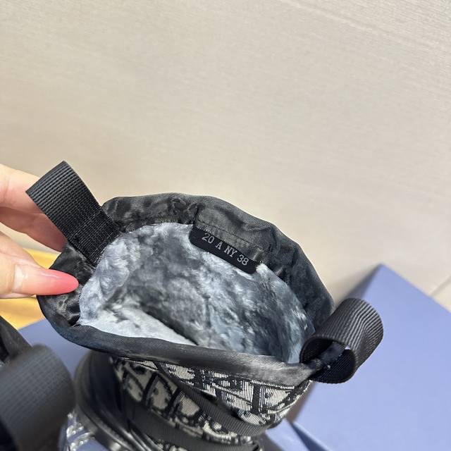 Dior 迪奥 秋冬新款雪地靴 半拖 这款Dior 及踝靴巧妙融合 Dior Chez Moi 系列元素 采用 Oblique 印花天鹅绒制作,Christia