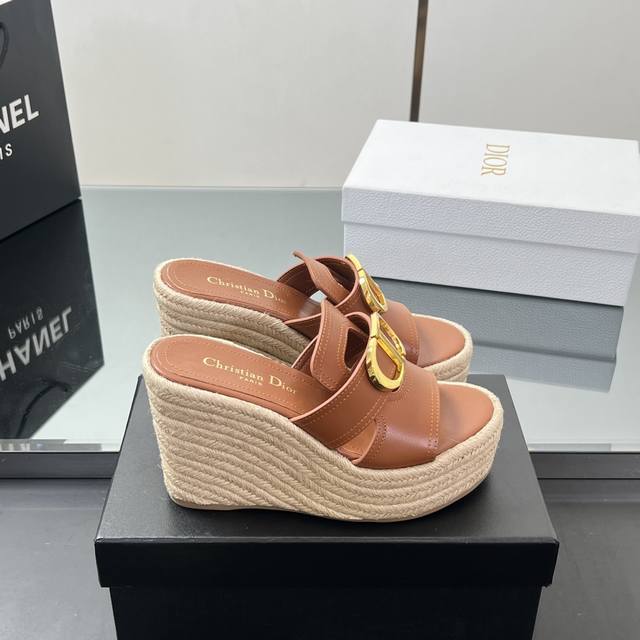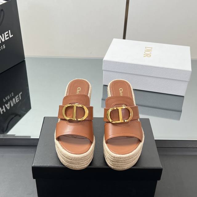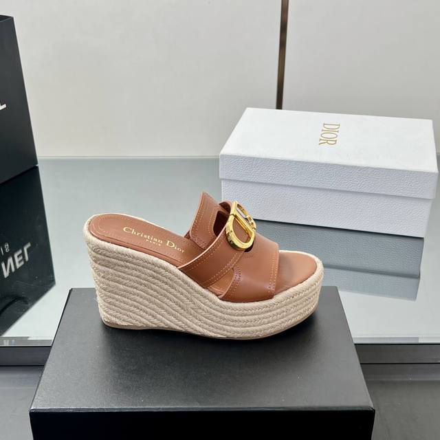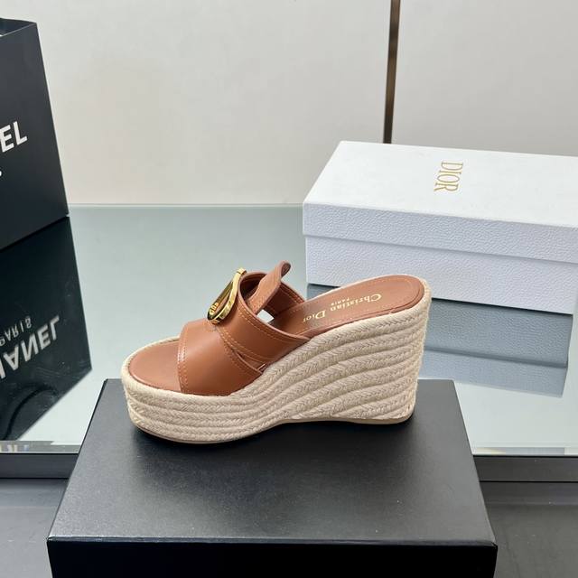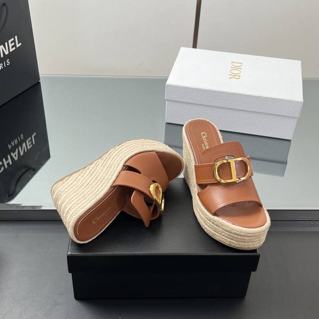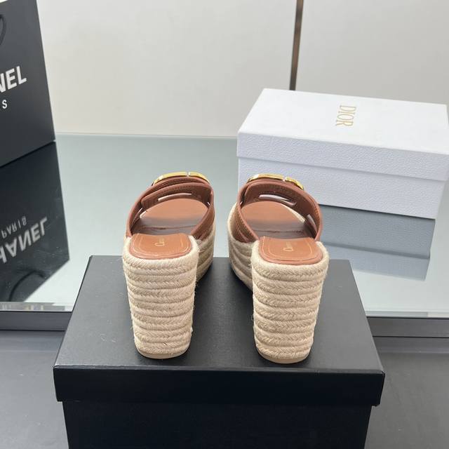 正确高版本 25Ss春夏新款Dior 迪奥Dway草编坡跟凉鞋字母刺绣麻绳底马鞍带防水台高跟凉鞋