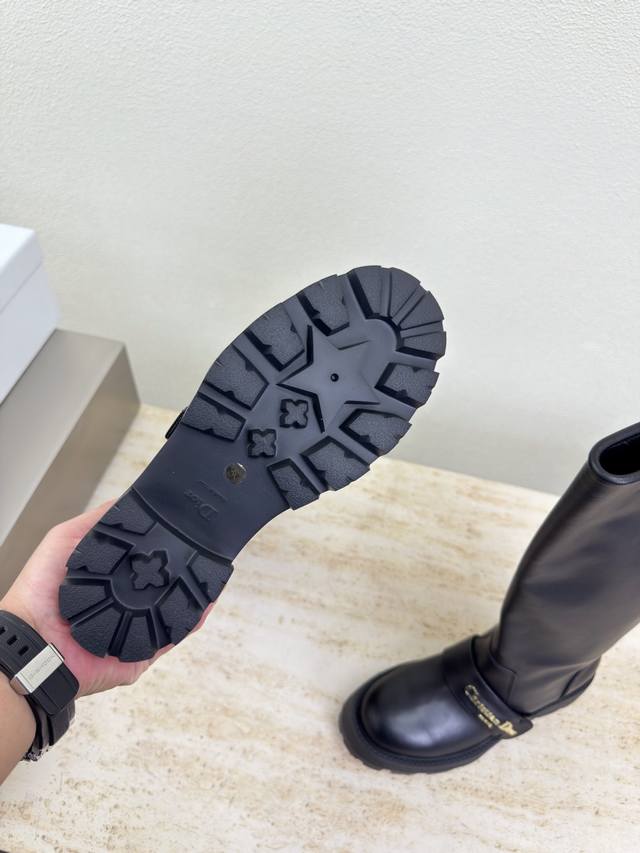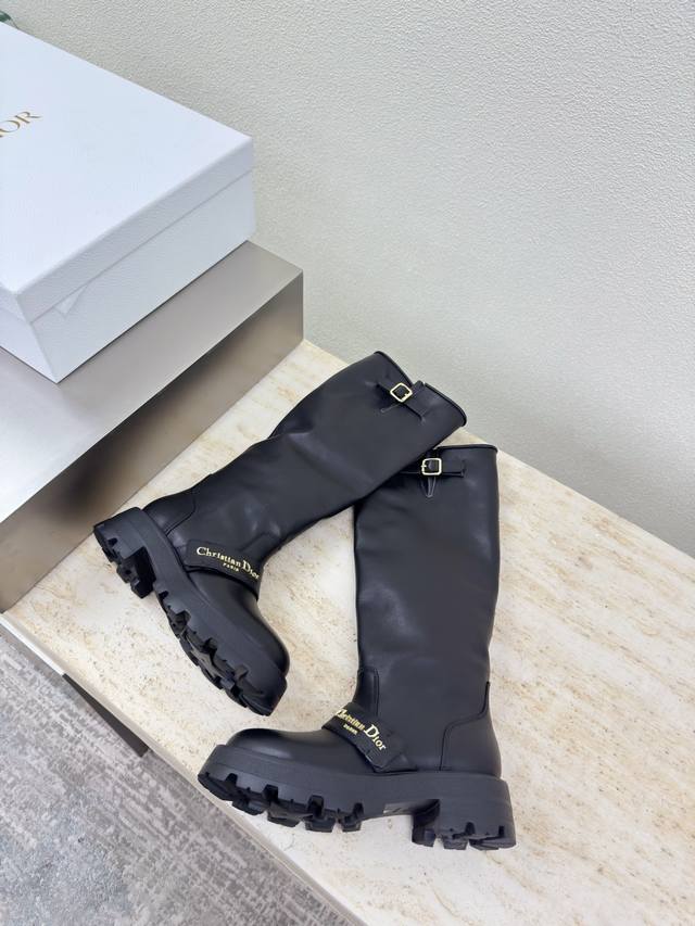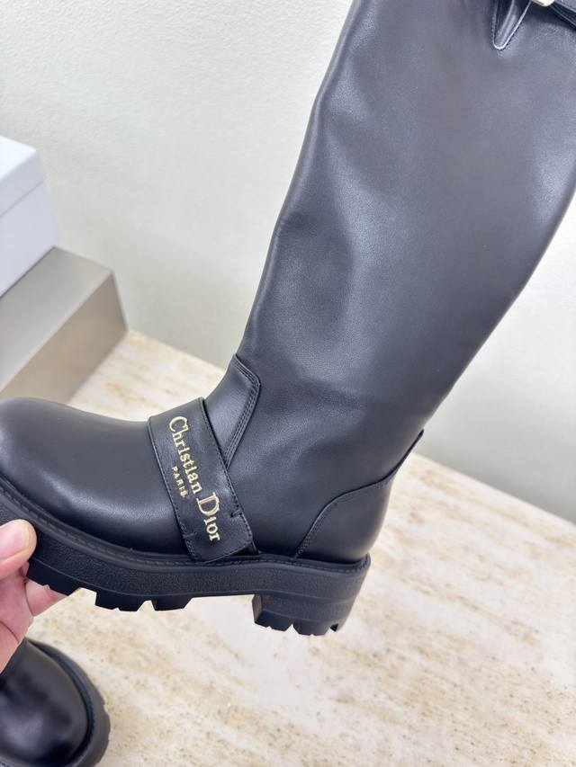 及膝高靴 Dior 厚底 金属字母Logo装饰 原版一致 黑色 头层牛皮 质感满满 小牛皮 鞋型升级到极致脚感 超级美 今年必不可少的时尚单品 D-Doll系列