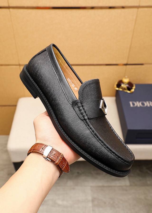 / 商品商标:Dior 迪奥 休闲皮鞋 正码码数: 38-44 45订做 商品材料:精选 意大利进口头层十字纹小牛皮鞋面+经典五金扣,进口水染牛皮内里。强烈立体视觉