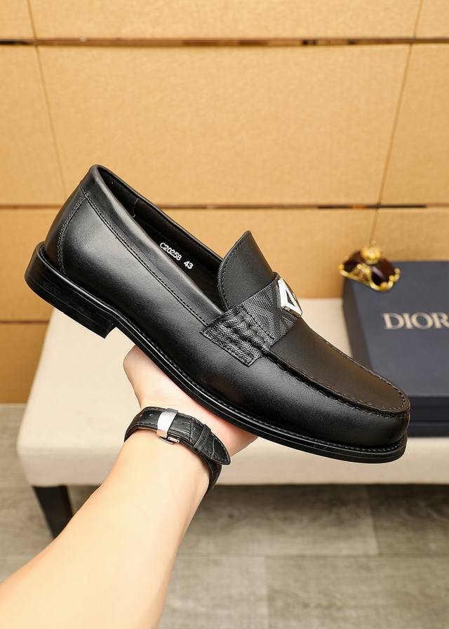 / 商品商标:Dior 迪奥 休闲皮鞋 正码码数: 38-44 45订做 商品材料:精选 意大利进口头层小牛皮鞋面+经典五金扣,进口水染牛皮内里。强烈立体视觉效果,