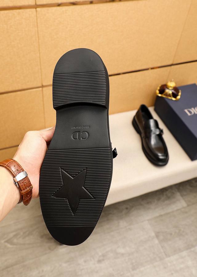 商品商标:Dior 迪奥 休闲皮鞋 正码码数: 39-44 38.45订做 商品材料:精选 意大利进口头层开边珠牛皮鞋面+经典五金扣,进口水染牛皮内里。强烈立体