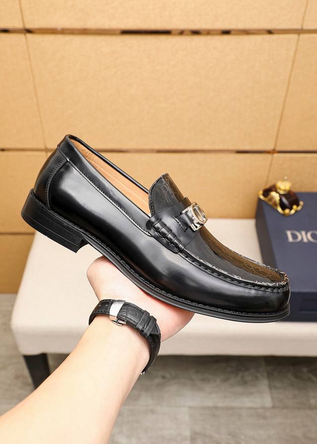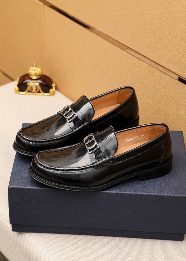 / 商品商标:Dior 迪奥 休闲皮鞋 正码码数: 39-44 38.45.46订做 商品材料:精选 意大利进口头层开边珠牛皮鞋面+经典五金扣,进口水染牛皮内里。强