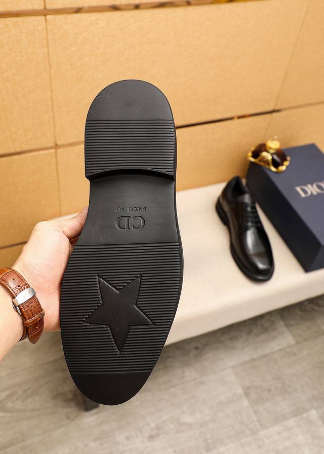商品商标:Dior 迪奥 商务皮鞋 正码码数: 39-44 38.45订做 商品材料:精选 意大利进口头层开边珠牛皮鞋面,进口水染牛皮内里。强烈立体视觉效果,原版大底 颜 色:1色可选