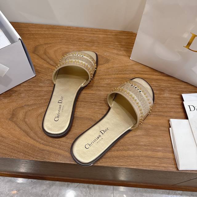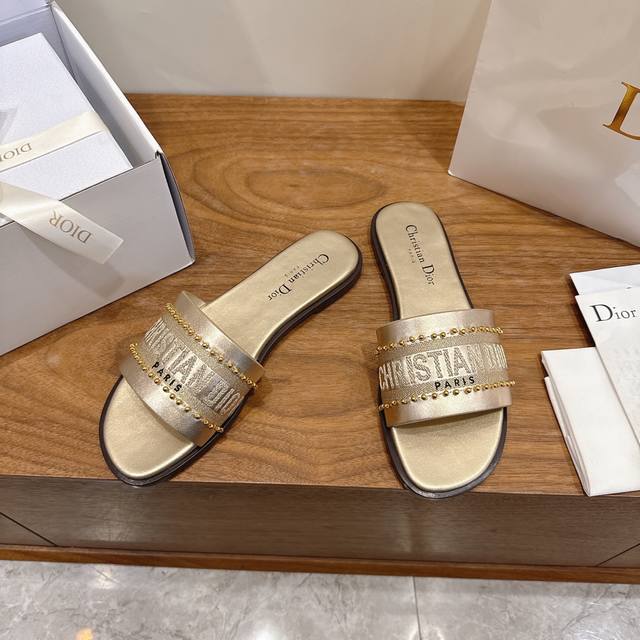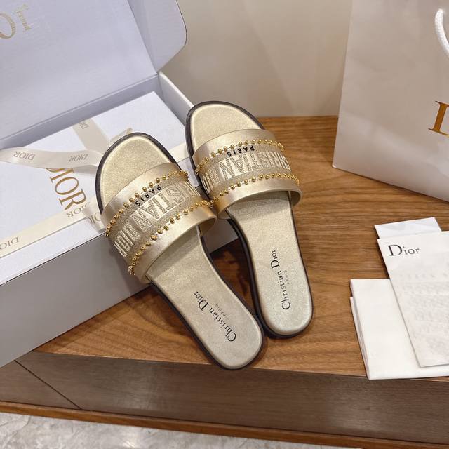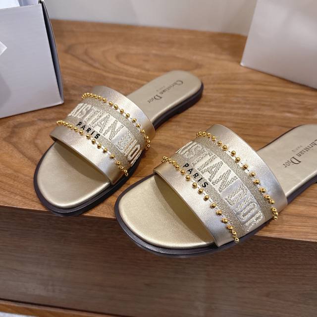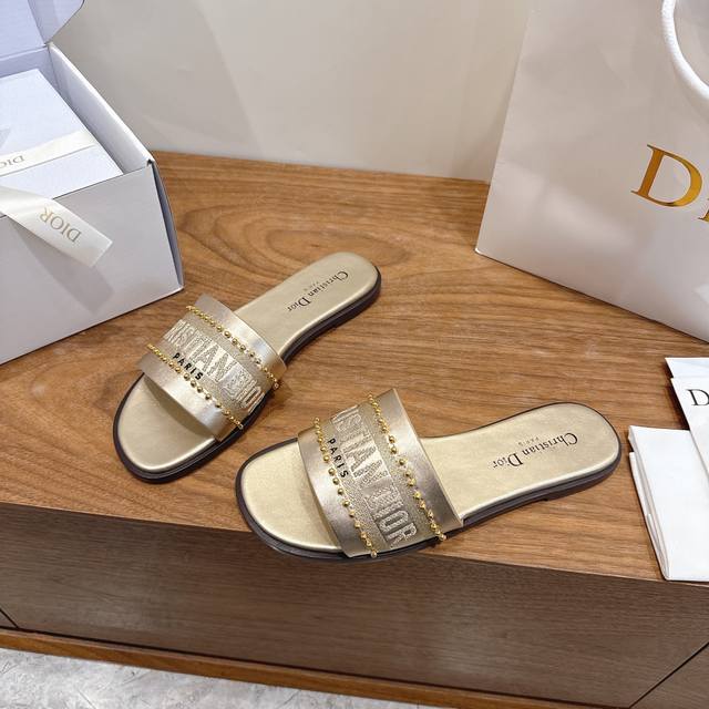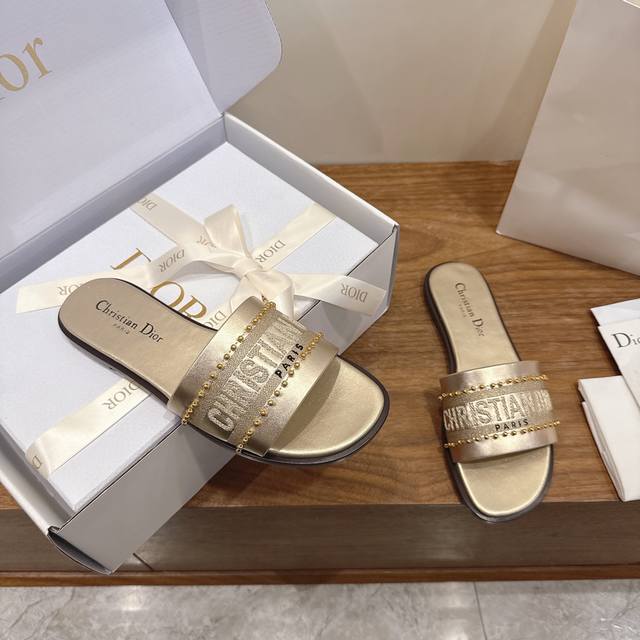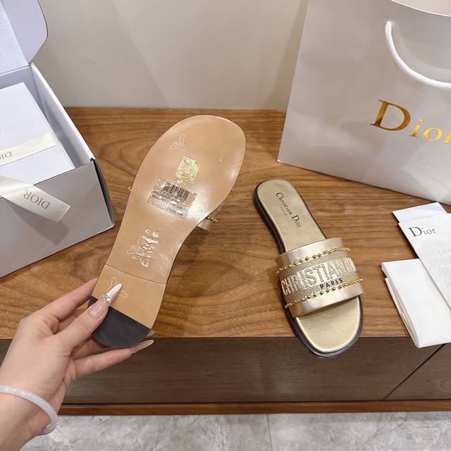 工厂p价p平底 Ddd 迪奥 Dior 2026春夏新款缝珠子皮面Logo立体绣果冻色露趾拖鞋 市面顶级版本 Ddd 材质:鞋面原版一致高温水溶棉质电绣科技真丝面料+水染羊皮内里+意大利真皮大底 Ddd 包装:每对鞋配飞机盒 Ddd Size:34-43 34.40.41.42.43定做不退不换 DDD