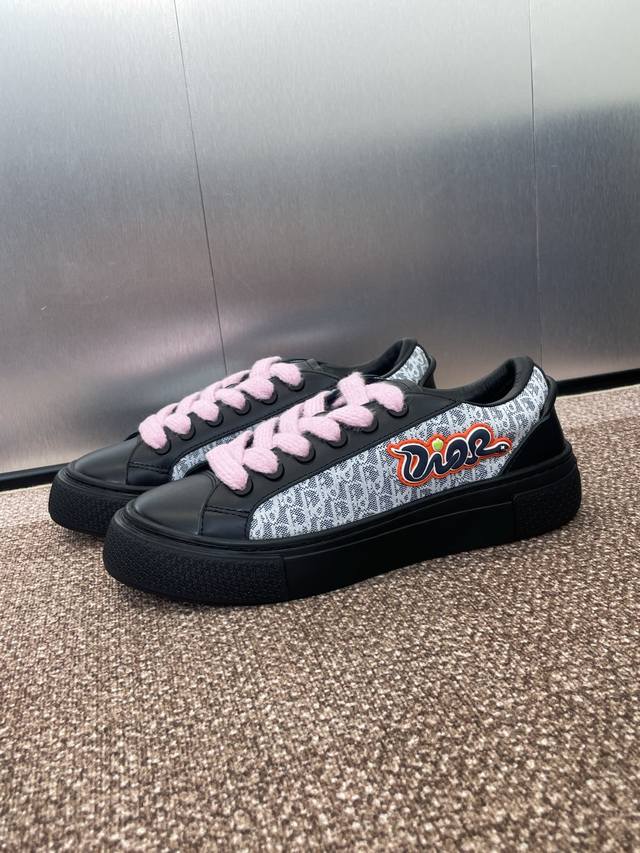 迪奥 2025春夏高定系列新款 Cd 情侣款平底休闲鞋 Dior X Kaws B33 Spin联名款圆头系带帆布滑板鞋 明星同款Oblique字母Logo刺绣复古拼色运动鞋 市面顶级高端版本