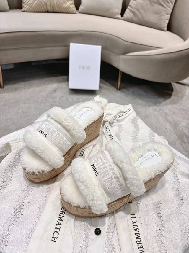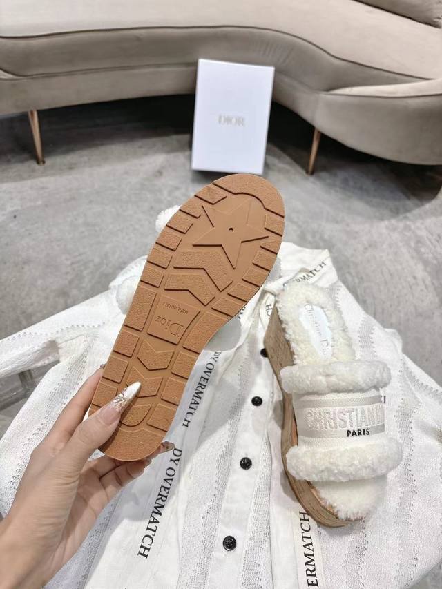 工厂p价p 迪奥 Dior 2025 春夏新款 Dway 果冻色坡跟女鞋 Cd字母Logo立体刺绣厚底圆头露趾拼色凉拖鞋 材质:鞋面进口小牛皮+水染羊皮垫脚内里