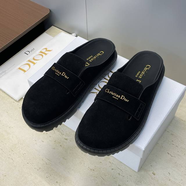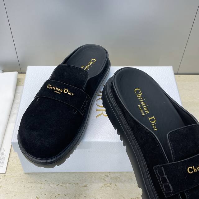 工厂p价p 迪奥 Dior 2026早春新款 D-Boy懒人沙滩女拖鞋 明星同款Cd字母Logo五金皮带扣厚底圆头穆勒鞋 材质:鞋面进口牛麂皮+水染牛皮内里+原