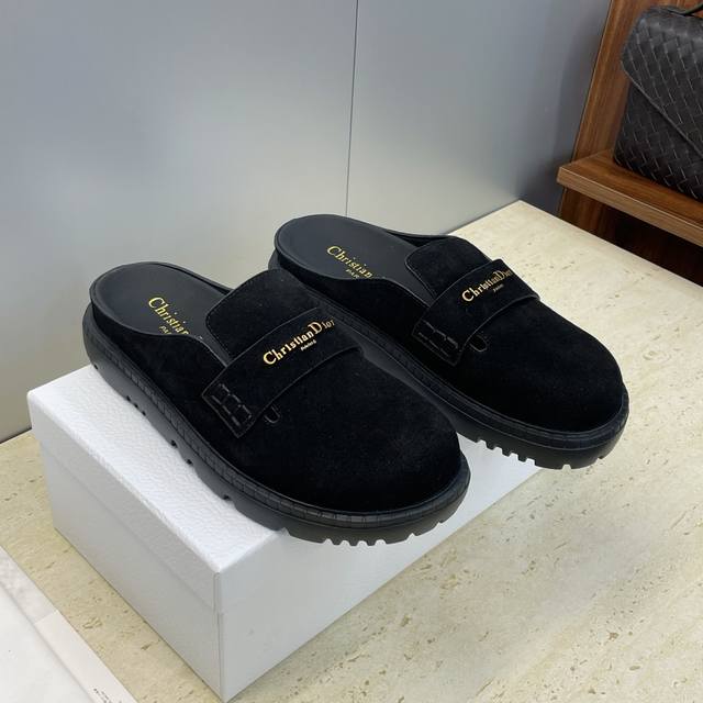 工厂p价p Ddd 迪奥 Dior 2026早春新款 D-Boy懒人沙滩女拖鞋 明星同款Cd字母Logo五金皮带扣厚底圆头穆勒鞋 Ddd 材质:鞋面进口牛麂皮+水染牛皮内里+原版开模Ip大底 Ddd Size:35-40 40定制不退换 DDD