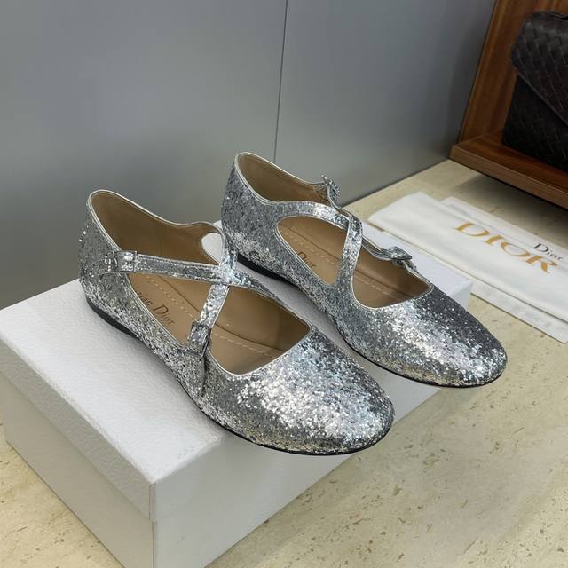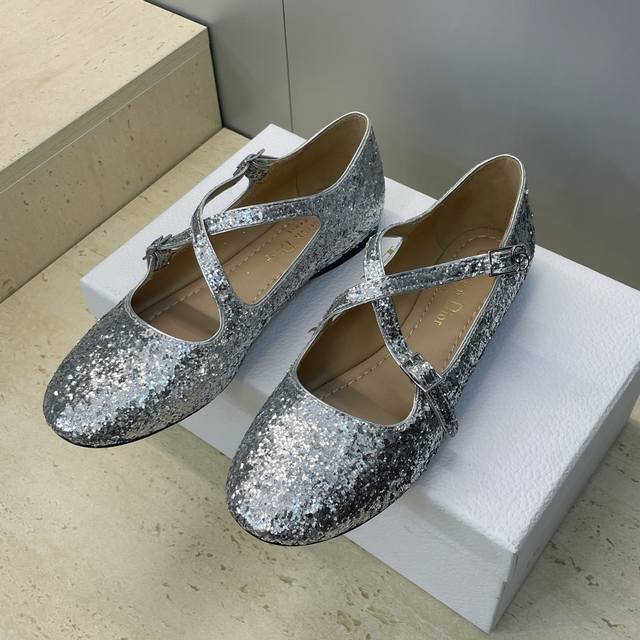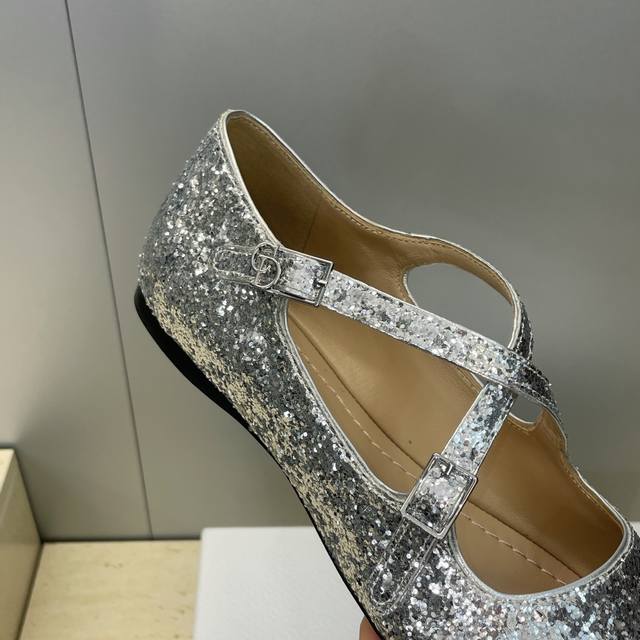 工厂p价p Ddd 迪奥 Dior 2026早春新款D-Very芭蕾舞娃娃女单鞋 Cd字母Logo五金扣交叉带平底圆头跳舞鞋 Ddd 材质:鞋面进口格力特亮片科技面料+水染羊皮内里+意大利真皮大底 Ddd Size:35-39 40.41定做不退换 DDD