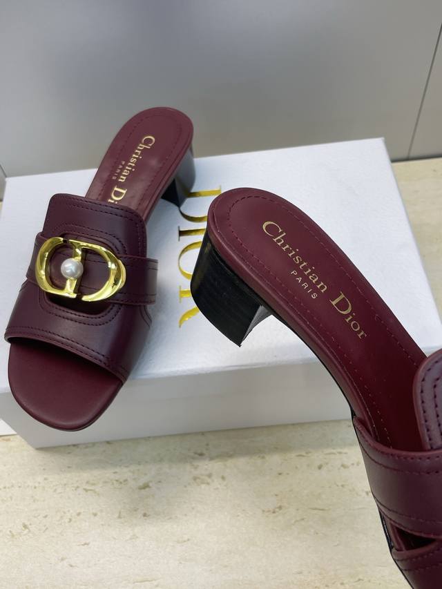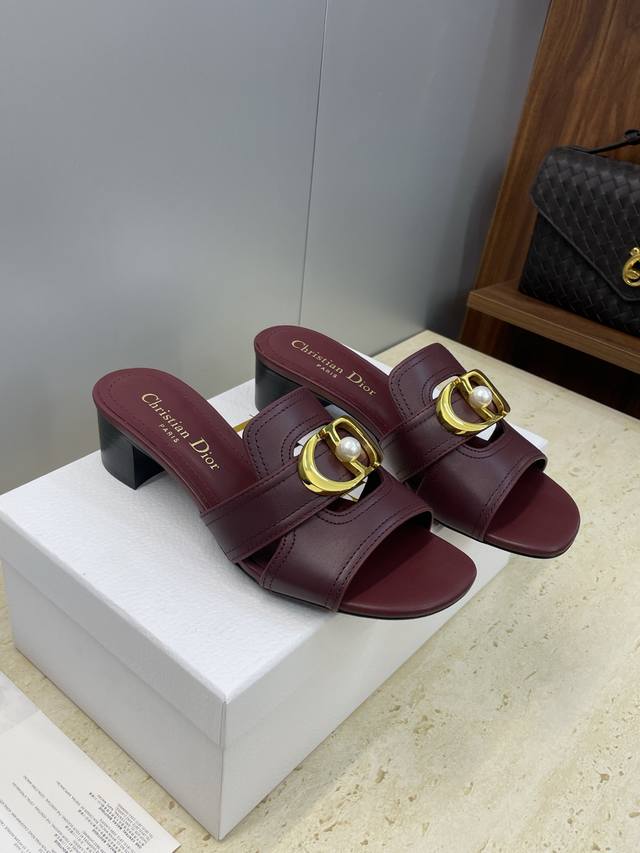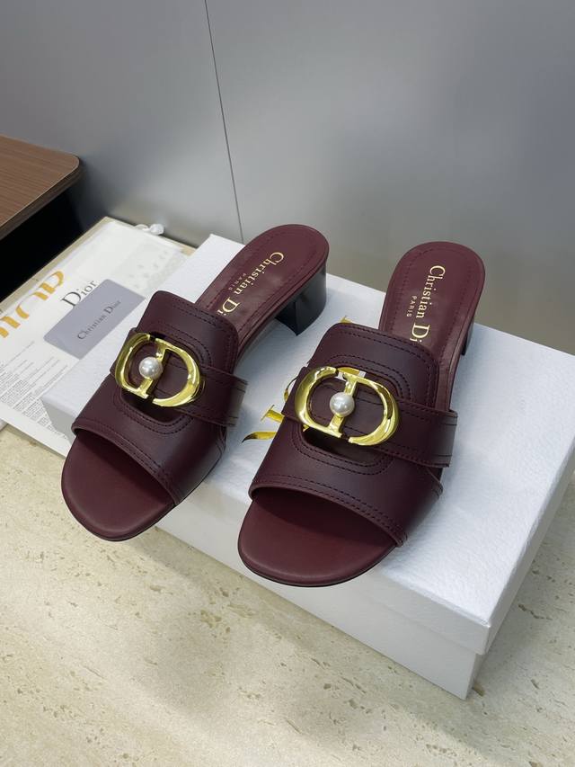 顶级原单 配飞机盒 dior 迪奥 新品蝴蝶结Cd珍珠扣高跟凉鞋 拖鞋 新品珍珠扣高跟凉鞋 性感且时髦...