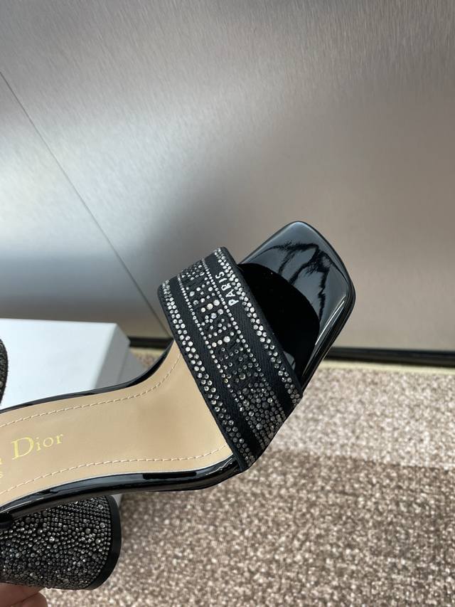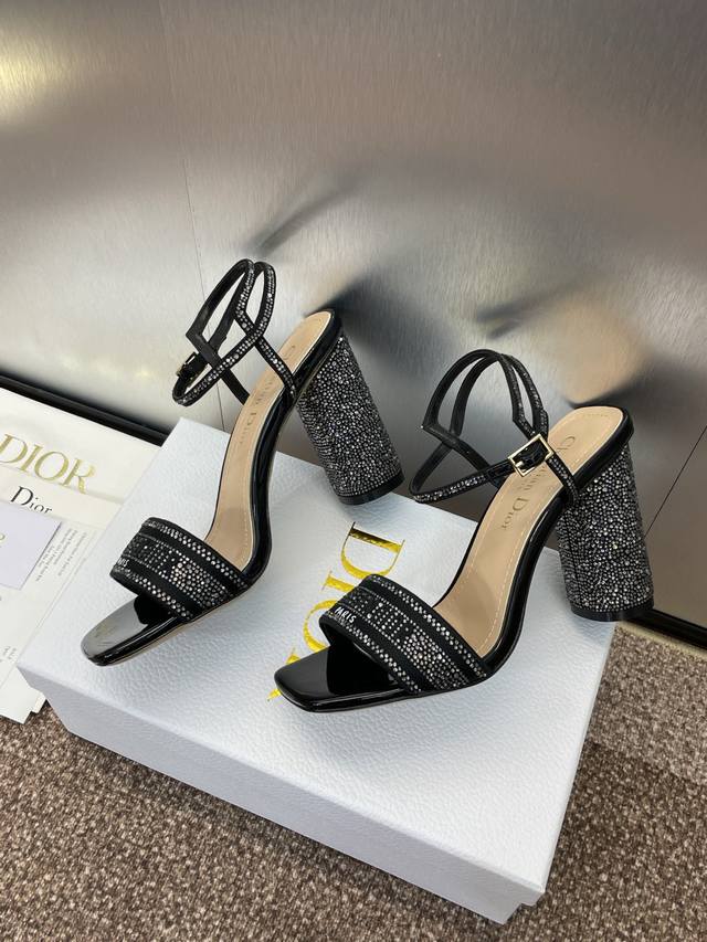 迪奥 Dior Dway 2025春夏最新款高跟电绣拼色水晶凉鞋 Cd字母Logo明星同款烫钻粗跟一圈带鱼嘴露趾女鞋