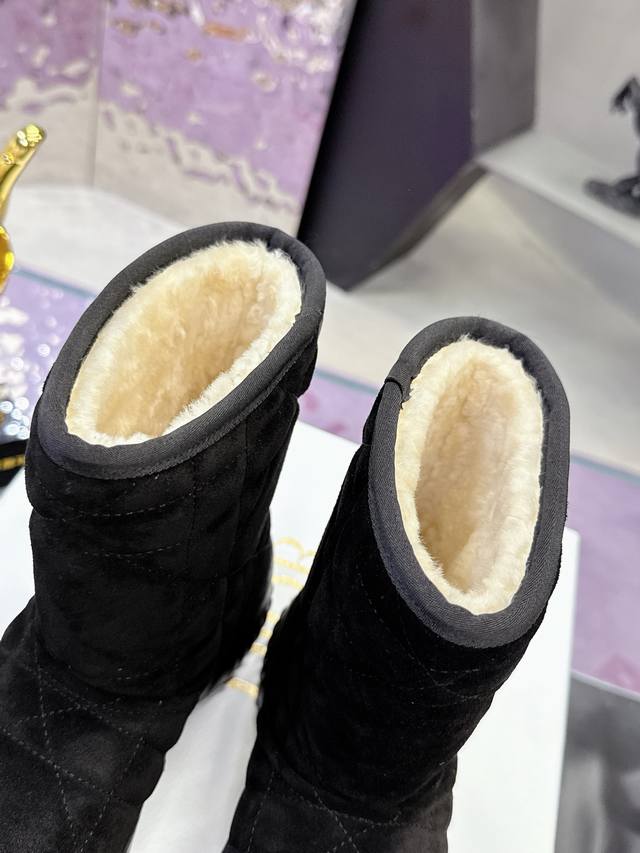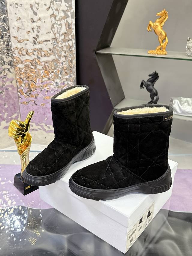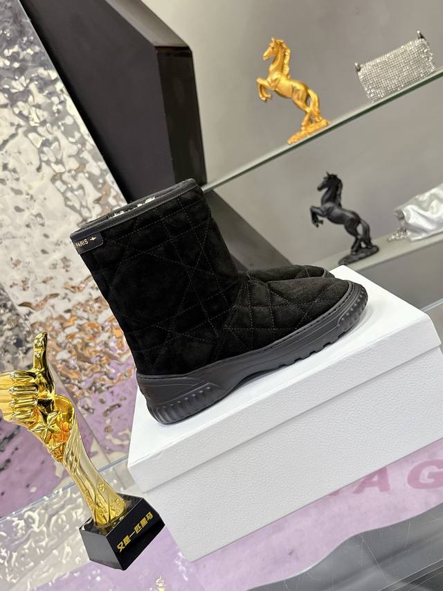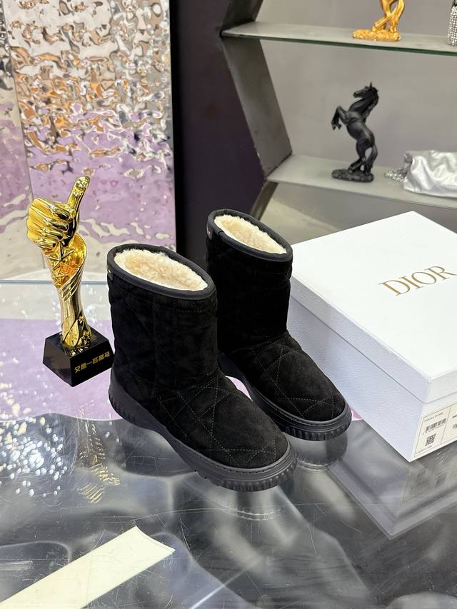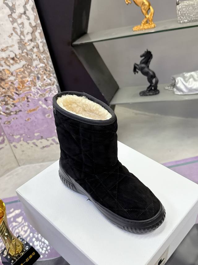 工厂p价p: 迪奥Dior 秋冬 雪地靴 半拖 这款Dior 及踝靴巧妙融合 Dior Chez Moi 系列元素 采用 Oblique 印花天鹅绒制作,Chr