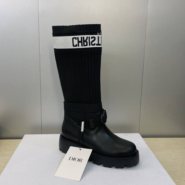 工厂p价p DDD Dior 迪奥 Cd 2025秋冬新款高定海报款D-Major电绣拼色字母Logo圆头弹力毛线中筒女靴 明星同款低跟一脚蹬骑士军靴 DDD 材质:鞋面进口小牛皮拼接最新进口科技飞织面料+水染羊皮内里垫脚+原版开模Tpu大底 DDD 跟高:3Cm DDD Size:35-39标准码 40.41定制不退换 DDD