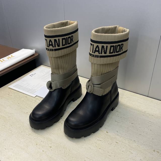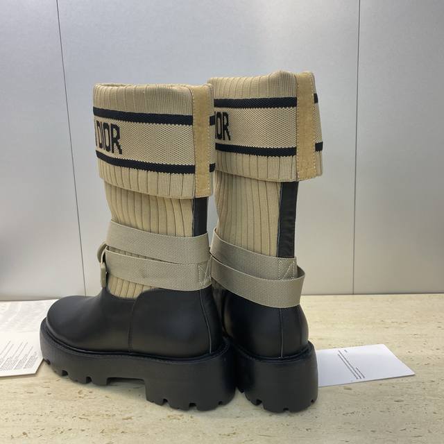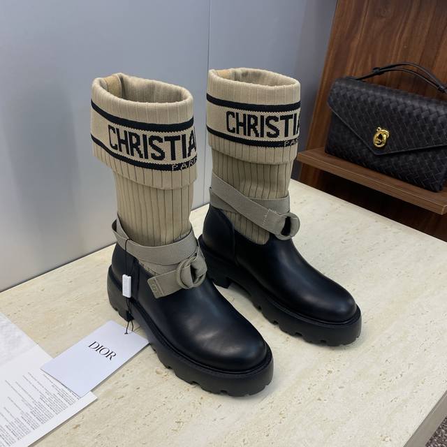 工厂p价p DDD Dior 迪奥 Cd 2025秋冬新款高定海报款D-Major电绣拼色字母Logo圆头弹力毛线筒女短靴 明星同款低跟一脚蹬骑士军靴 DDD 材质:鞋面进口小牛皮拼接最新进口科技飞织面料+水染羊皮内里垫脚+原版开模Tpu大底 DDD 跟高:3Cm DDD Size:35-39标准码 40.41定制不退换 DDD