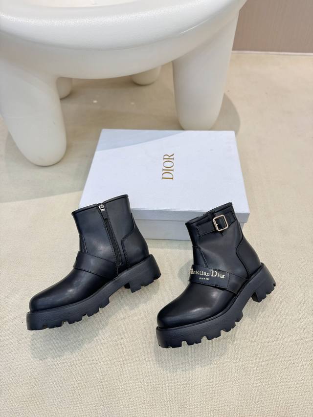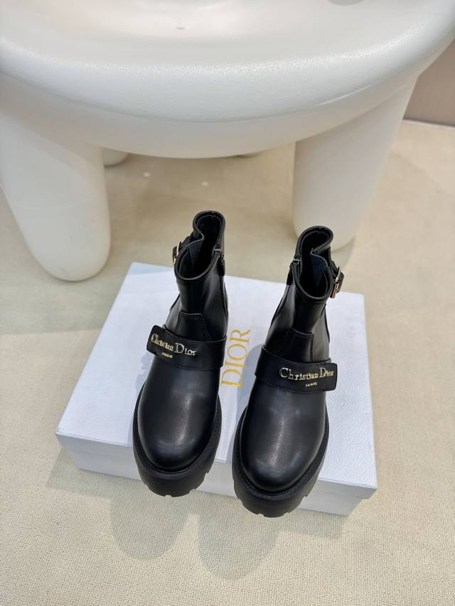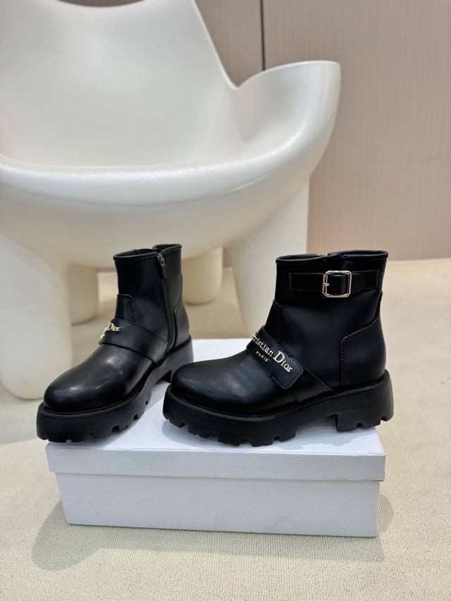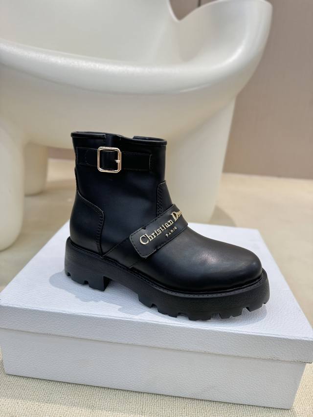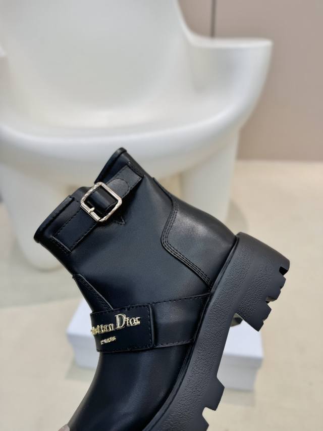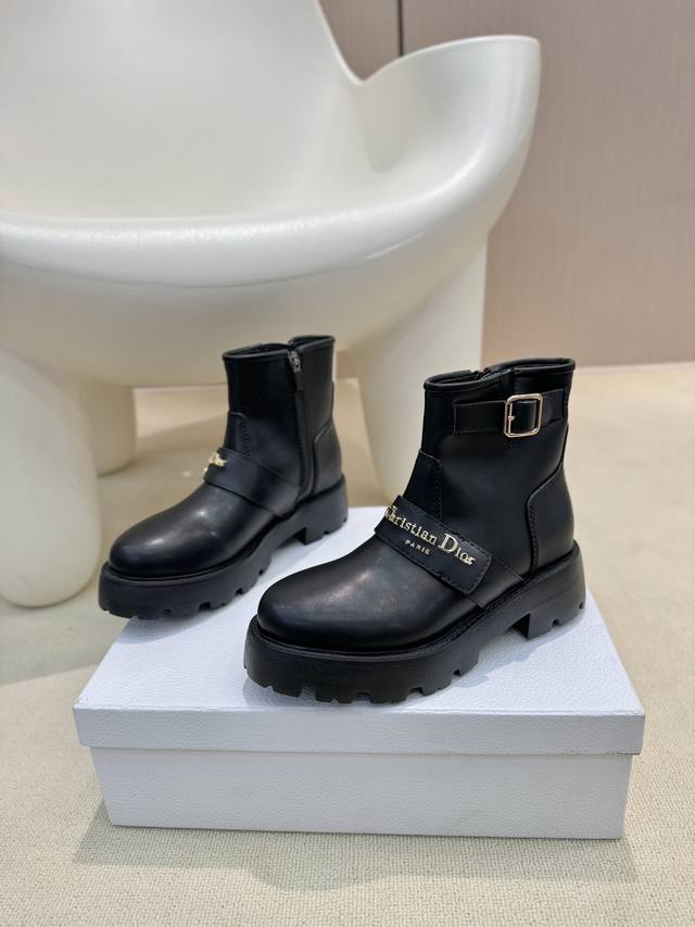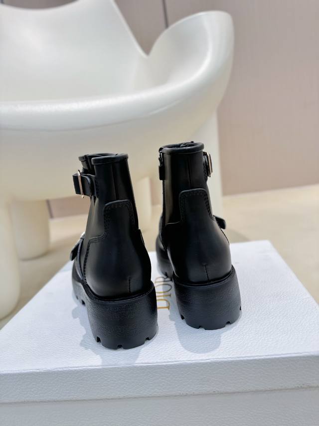 工厂P直批:短款 Dior 迪奥 秋冬新款D-Major系列朋克风女靴 明星同款Cd字母Logo五金皮带扣侧拉链机车长靴 粗跟厚底圆头一脚蹬骑士短靴 鞋面:进口全粒面小牛皮 内里:水染羊皮内里垫脚 大底:原版开模Tpu大底 配饰:原版开模五金扣 底厚:3.5Cm Size:35-41标准码 40.41定制不退换