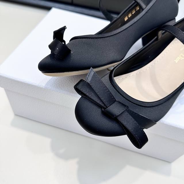 / 平底未拍图 Dior迪奥25年新款 芭蕾蝴蝶结单鞋 真丝当缎面的温柔邂逅Dior的优雅,这双芭蕾鞋便成了浪漫的具象。蝴蝶结轻缀,方跟雅致,每一步都似在法式梦境里