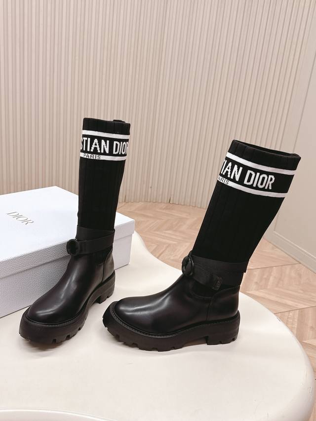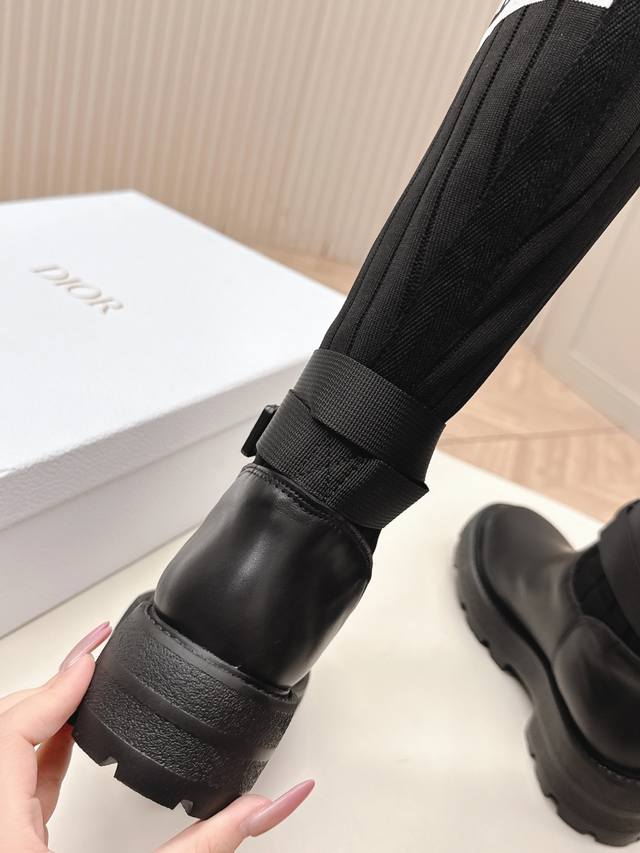 最高版本 Dior迪奥2026新款封神战靴马丁袜子靴 超酷飒有范儿 匠心搭配多层条皮带扣 彰显潮流前卫风格 帅气有型 焕发运动时尚型格 面料:原版定制牛皮 弹力