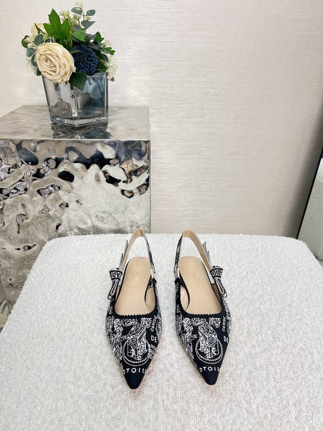 / 橙子出厂价p 迪奥 Dior 春夏最新色 J'adior 织带后空凉鞋 jardin D Hiver 提花刺绣字母Logo蝴蝶结拼色蕾丝高跟鞋女鞋 跟高 平底