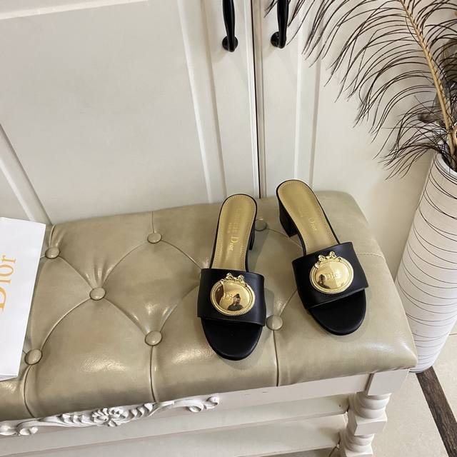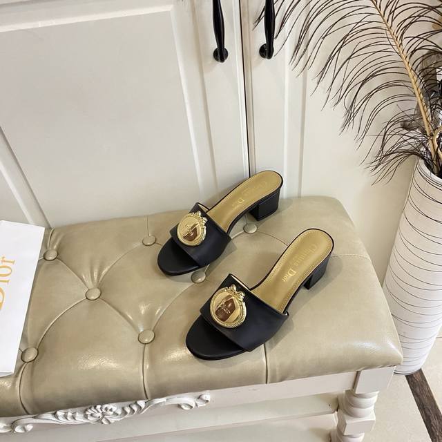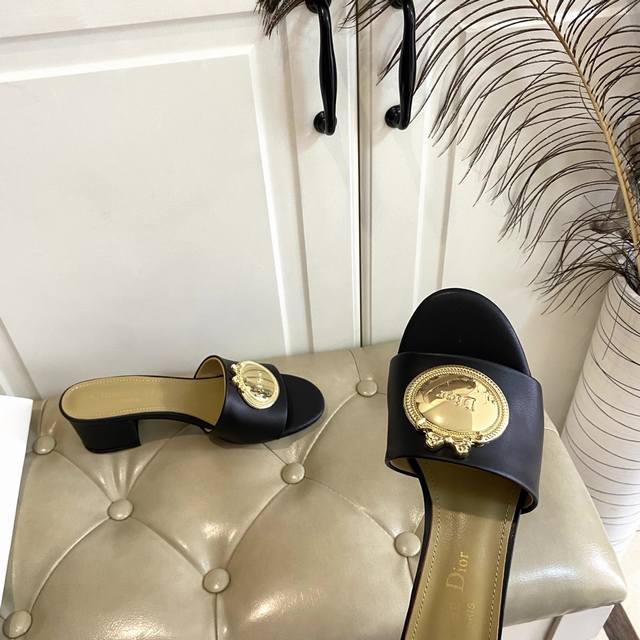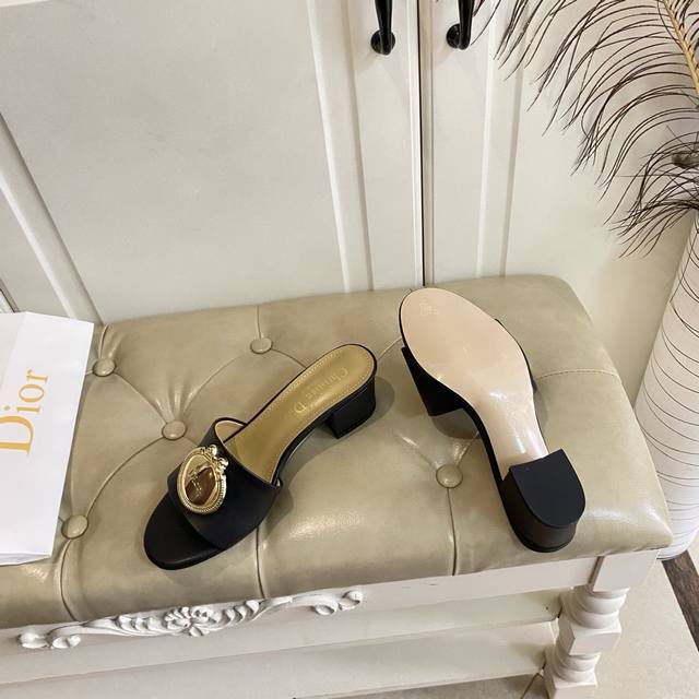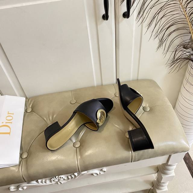 橡胶底 ,真皮底 ,迪奥Dior中跟拖鞋,跟高5.5Cm,牛皮面,羊皮里,35-42码 DDD